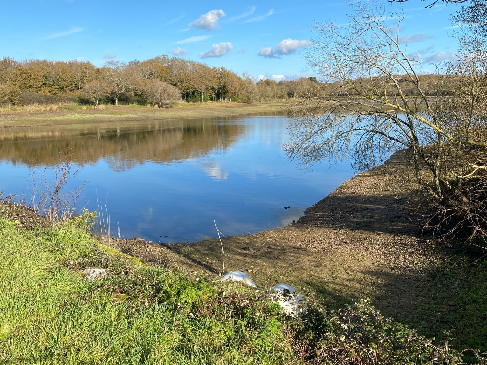 Au bout de deux kilomètres me voici au pied de l'étang du Gros Caillou. Il est loin d'avoir retrouvé un bon niveau d'eau.