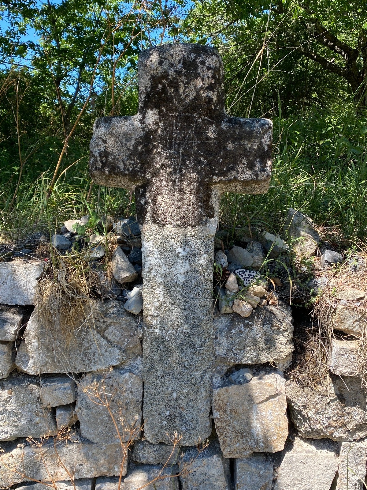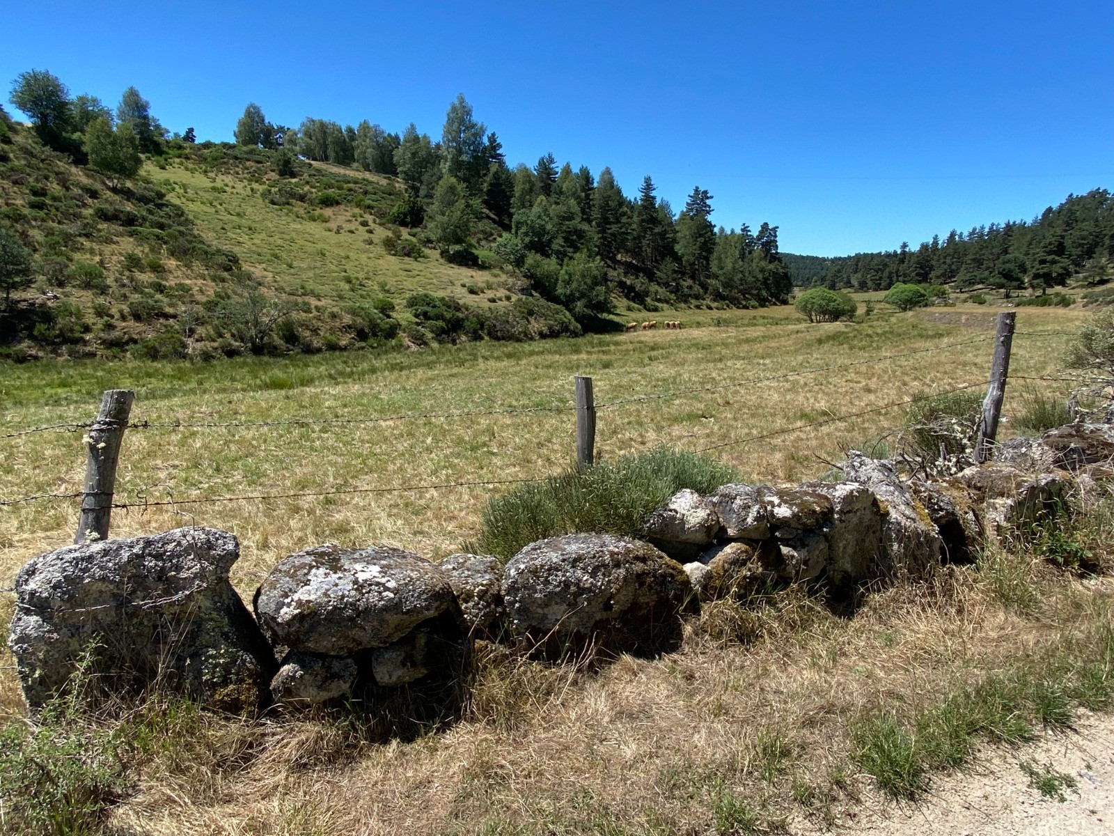 Ici ce ne sont pas des murets ( contrairement au Causse du Lot ) mais de grosses pierres qui délimitent les parcelles ( photo no 10 )