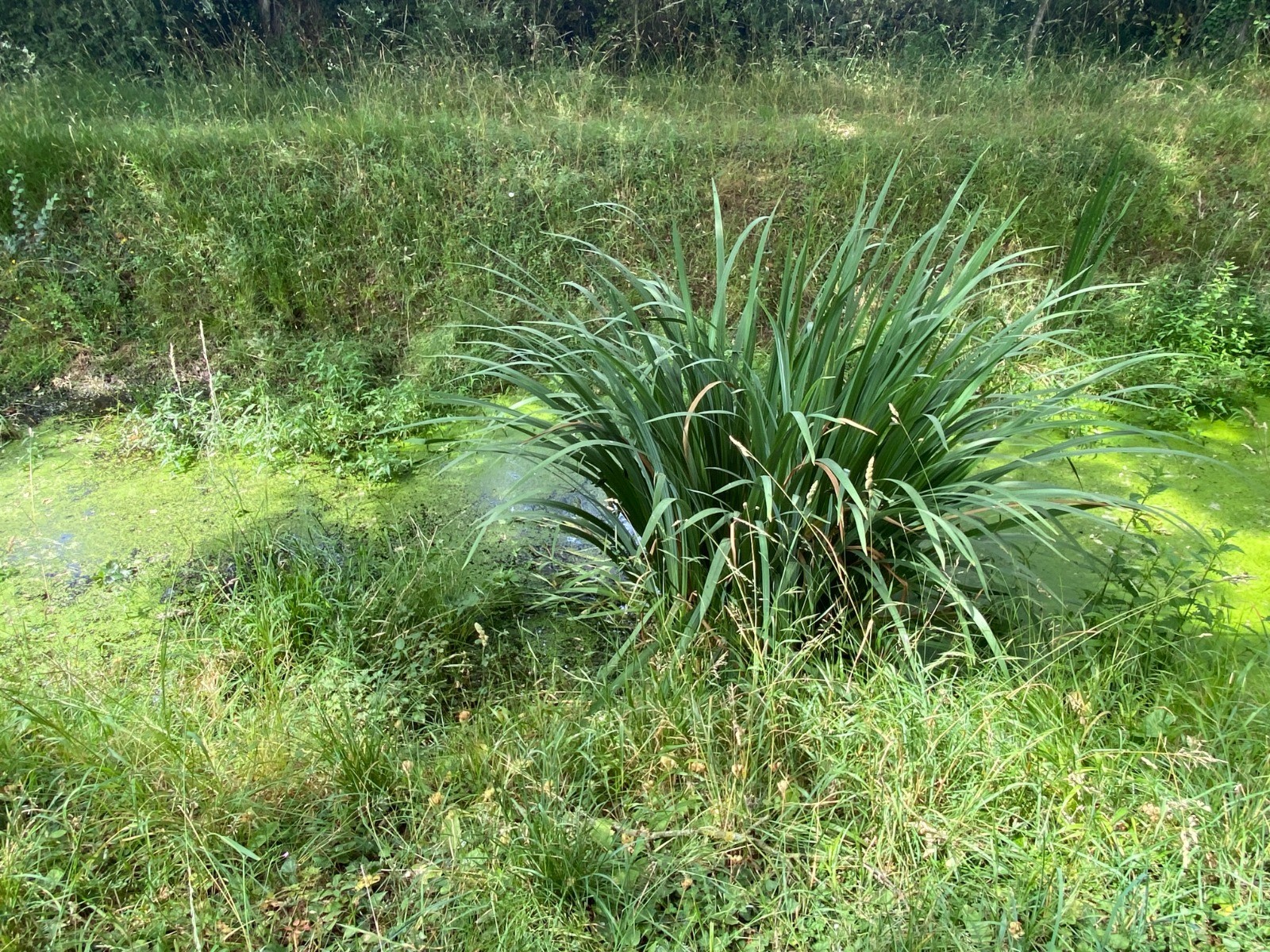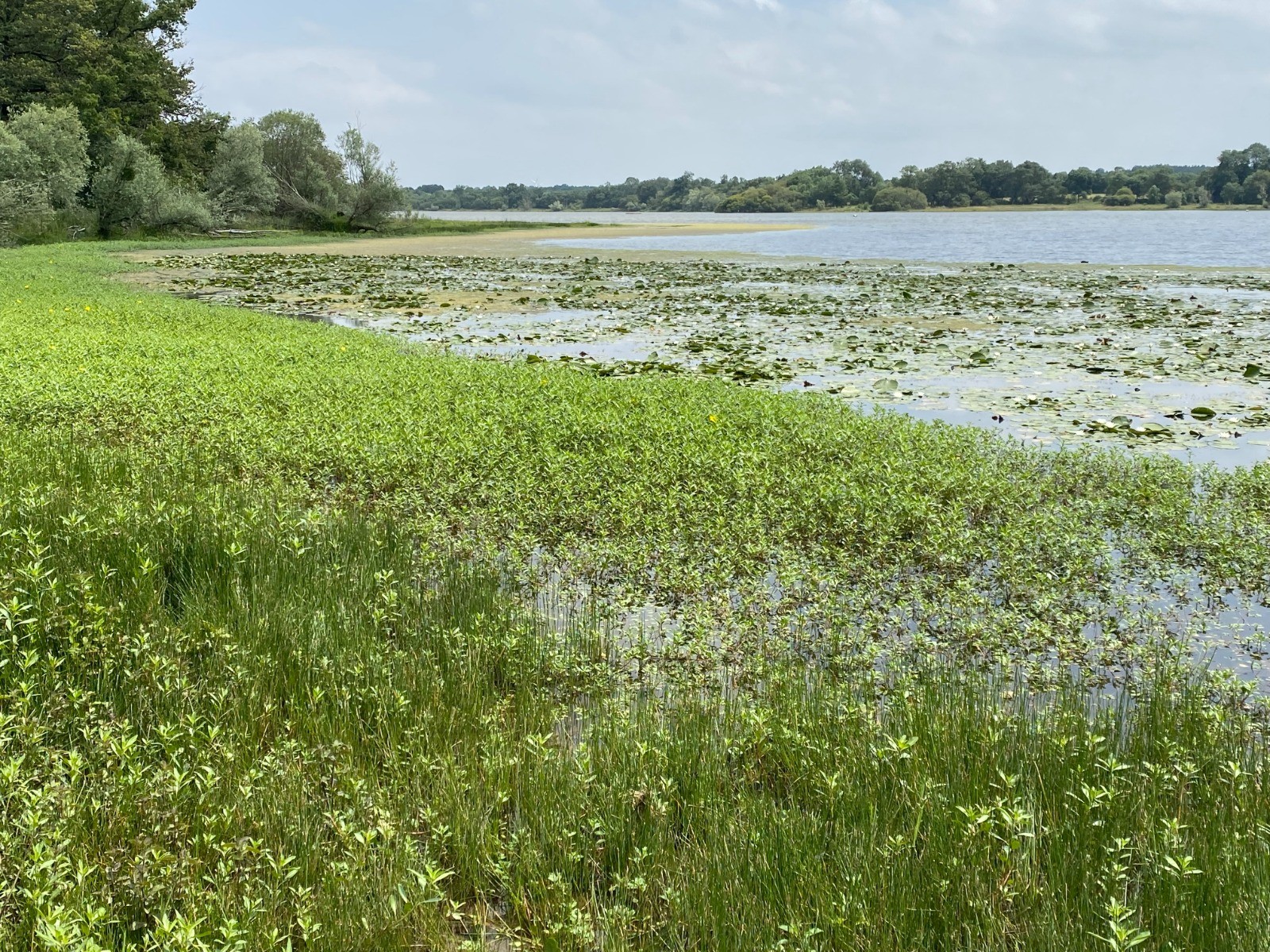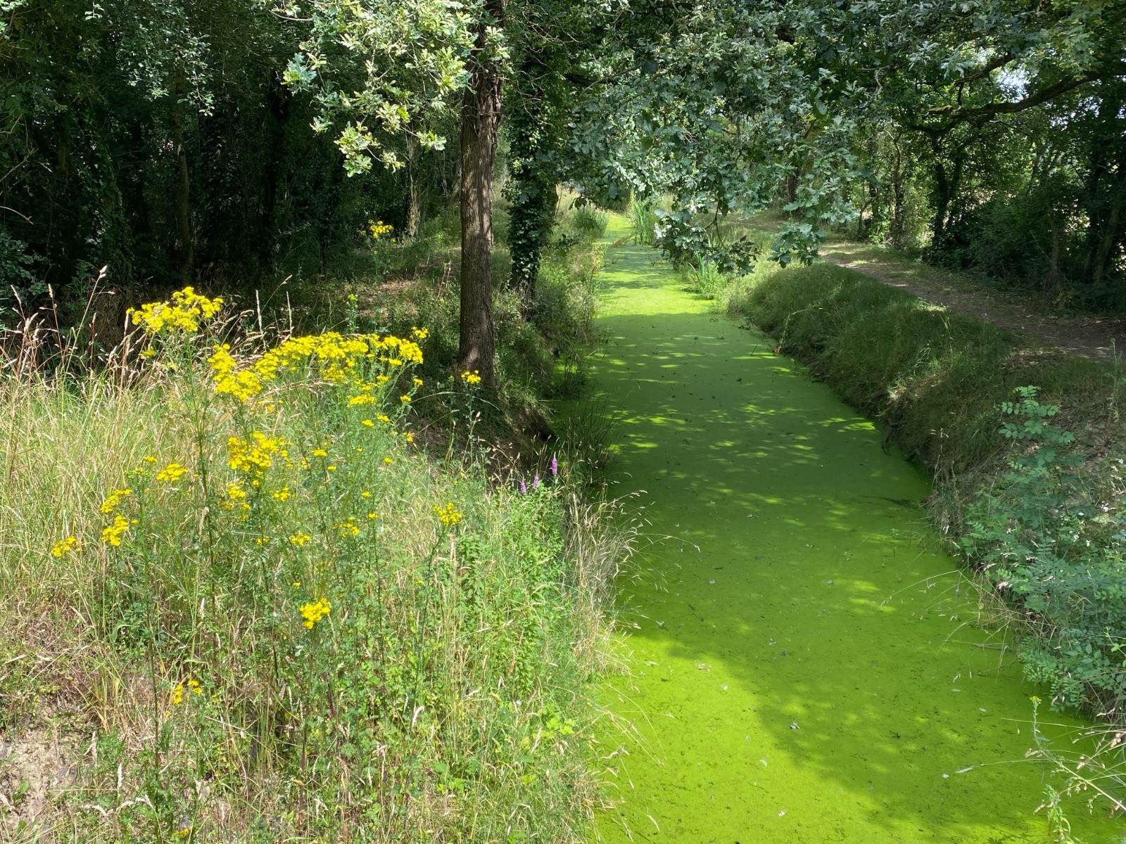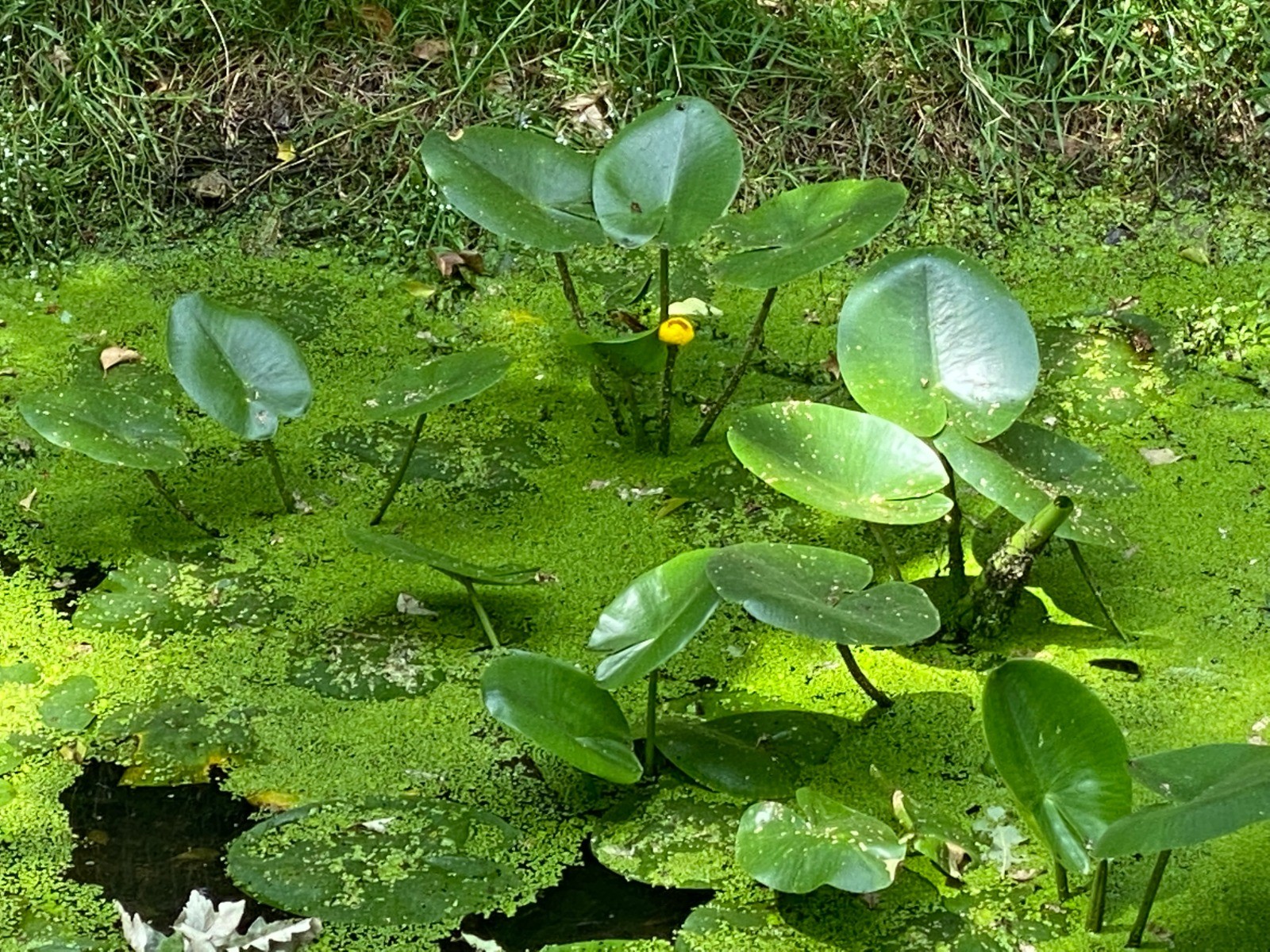 Celle-ci est envahie par des lentilles d'eau et ici et là de grosses colonies de nénuphars jaunes.