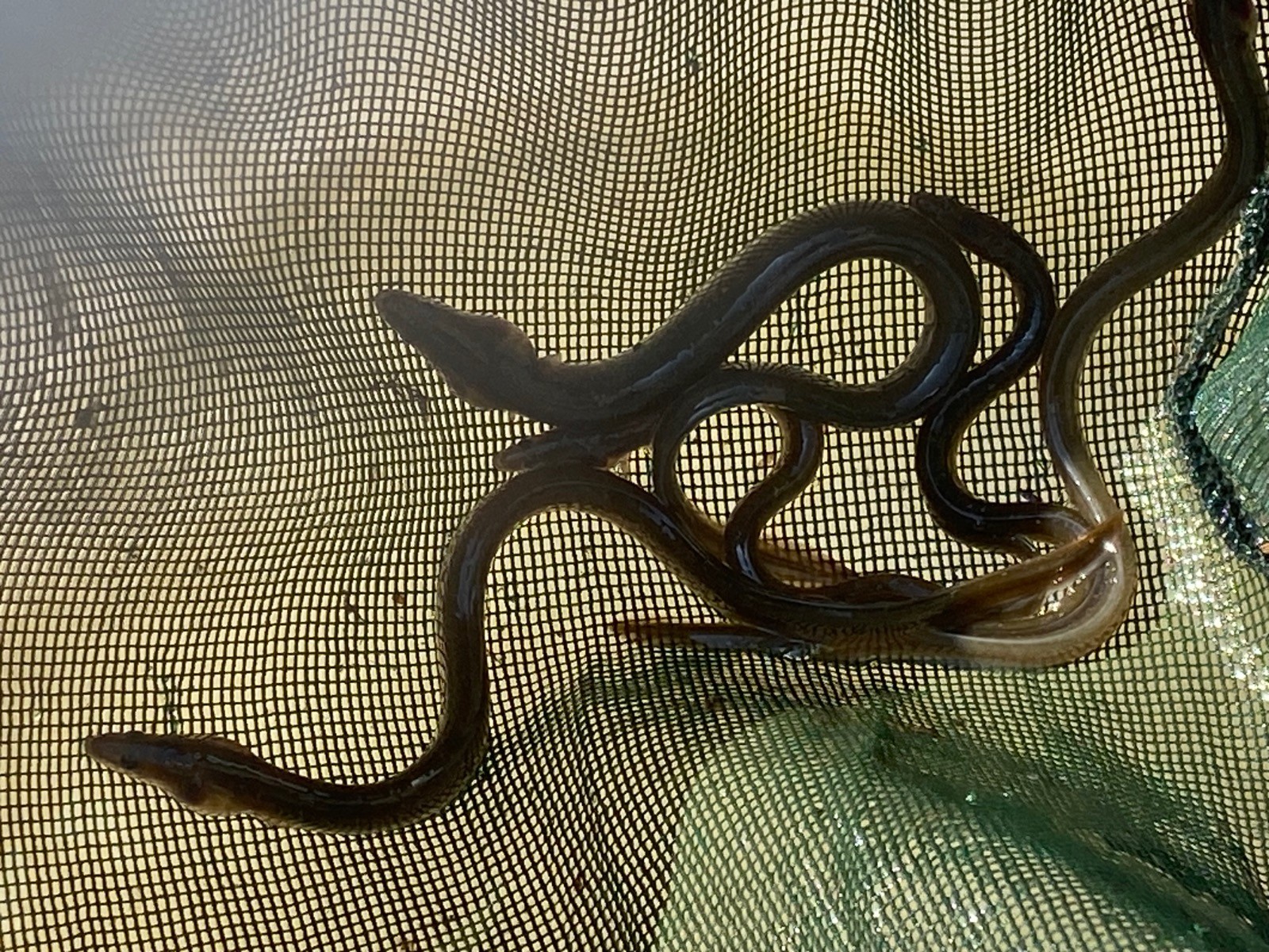 Un garde-pêche est en train de récupérer de jeunes anguilles ( photo no 8 ) puis procède à la pesée avant de les relâcher dans le lac.