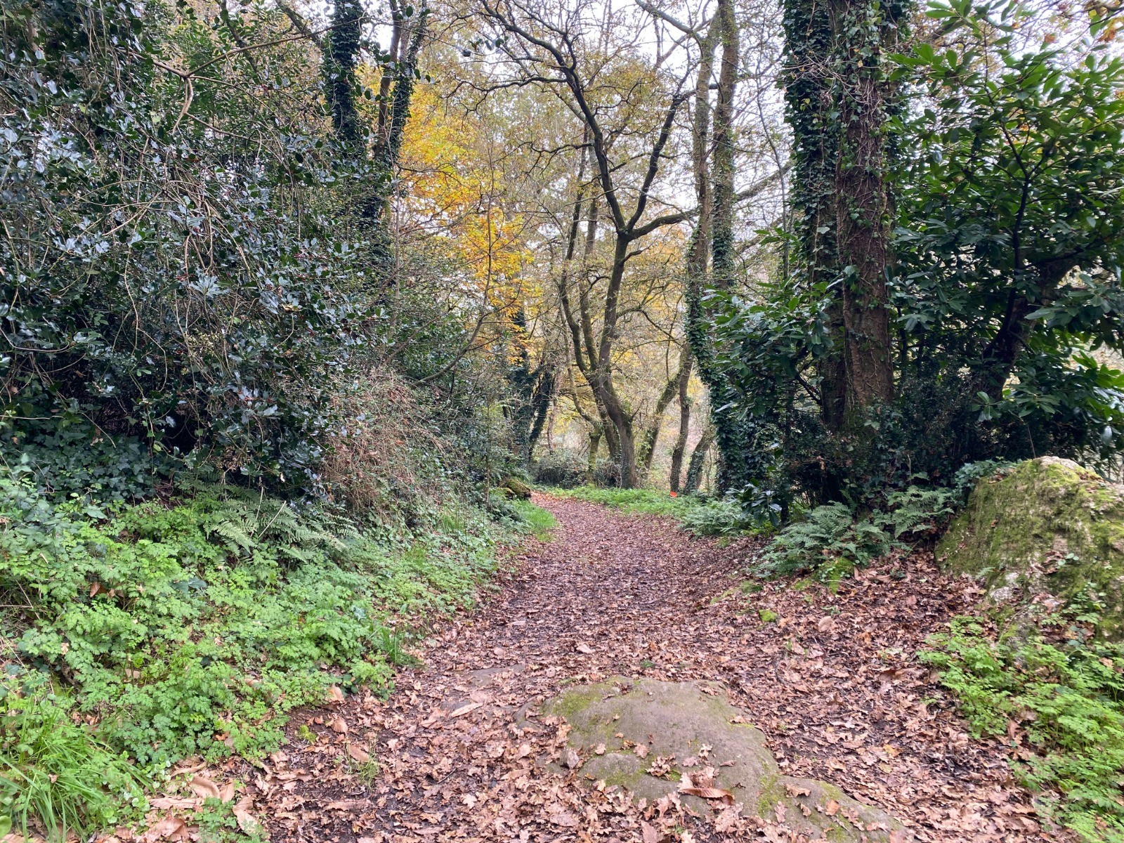 Tout au long du parcours, les tapis de nombrils de Vénus ajoutent une touche printanière et colorée au sentier, alors que les branches de houx, aux feuilles vertes et aux baies rouges, nous rappellent que Noël approche à grands pas.