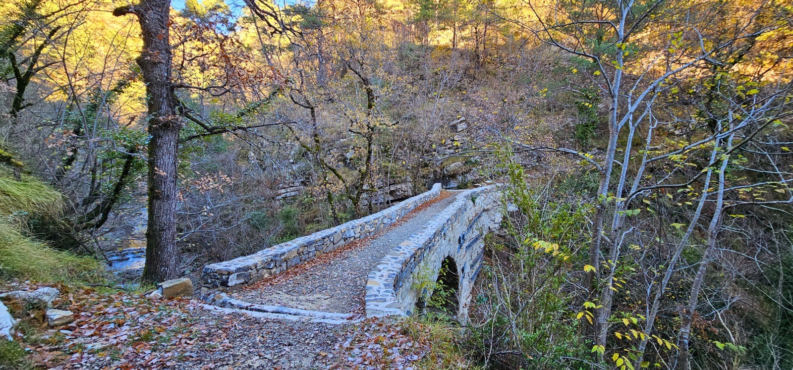 Extension de l'itinéraire "Randoxygène" sur le pourtour d'un vallon parcouru par plusieurs cours d'eau enjambés par des ponts de caractère. Prolongation rendue possible après rénovation (décembre 2023) de l'un des 3 ponts jalonnant ce vallon, qui avait été endommagé par la tempête Alex (2020) et qui permet désormais de relier les 2 cols précités, par cet itinéraire de contournement comprenant des montées successives.