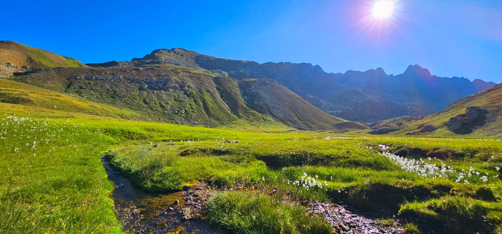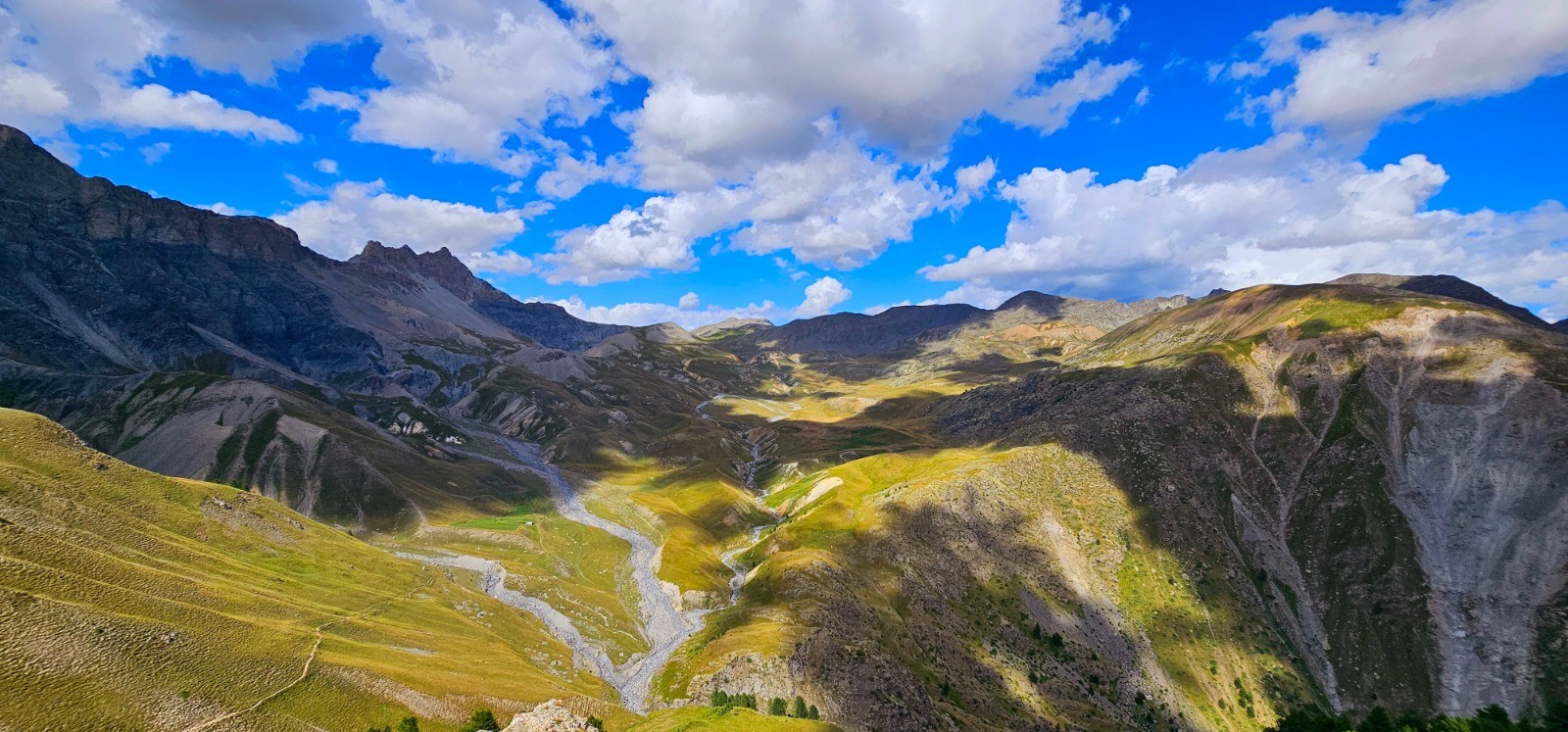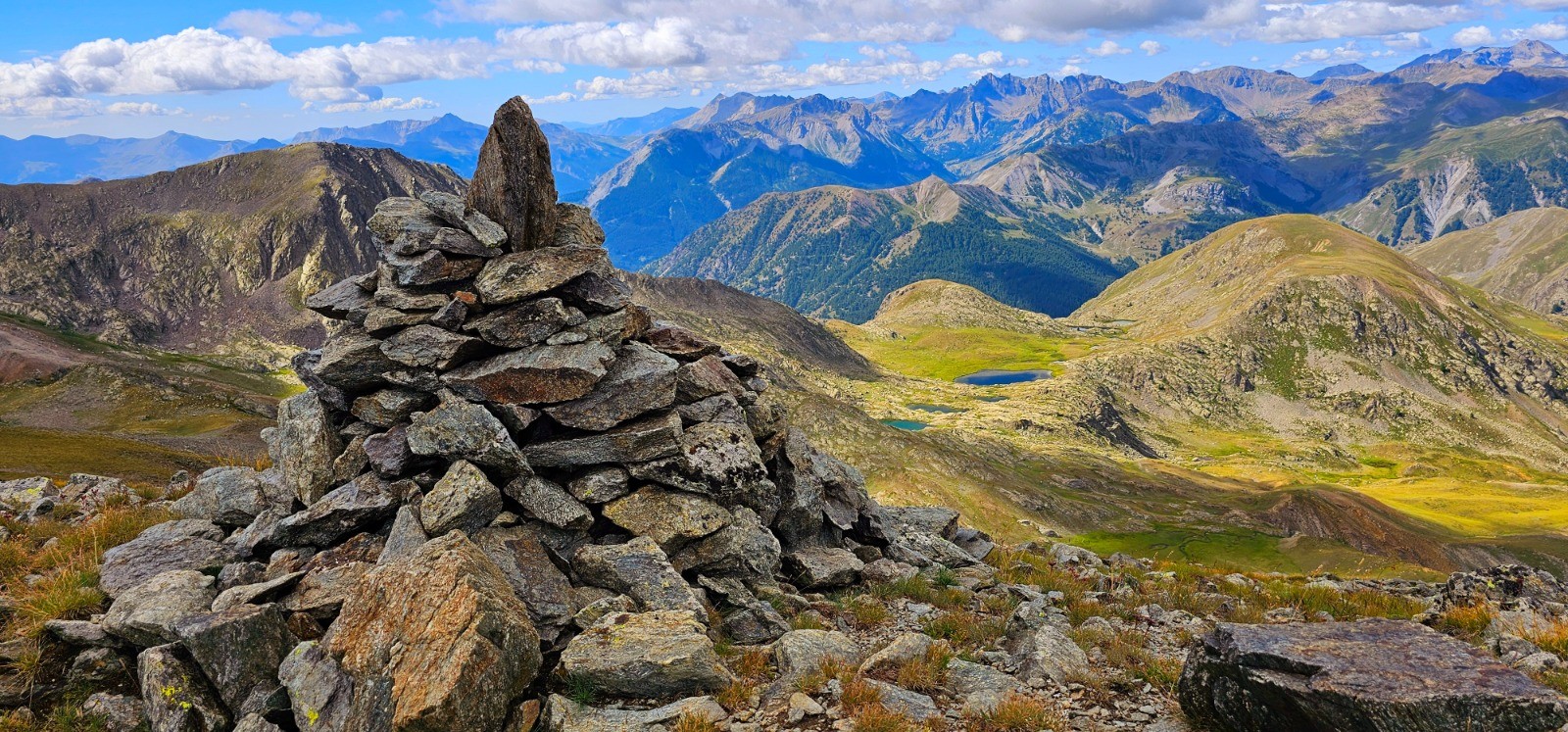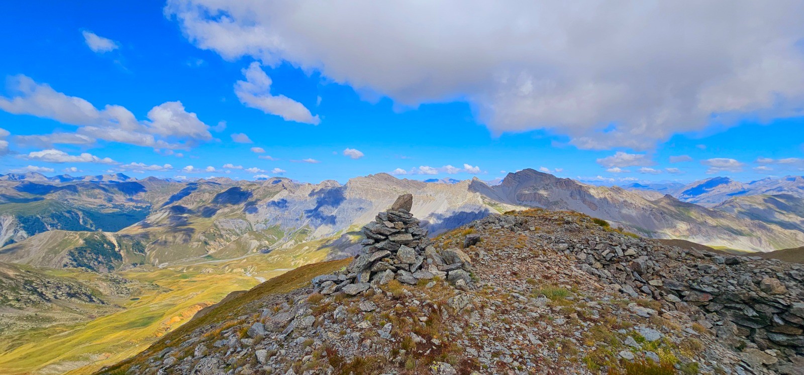 Circuit en demi boucle dans la Haute Tinée pour ascension du sommet franco-italien du Mont Aiga avec une superbe ligne de crête frontalière de 3,3 km entre le Pas de Gorgeon Long et le col de Pouriac, via le Pel Brun, dans le secteur agro-pastoral réputé du Salso Moreno. Site inclassable d'une stupéfiante beauté qui ne laisse personne indifférent (immensité des paysages parsemés de lacs, chaînes majestueuses avec sommets emblématiques en ligne d'horizon, Viso, Tête de l'Enchastraye, etc... qui concourent à la magnificence de ce parcours). Evolution dans zone coeur du Parc National du Mercantour.