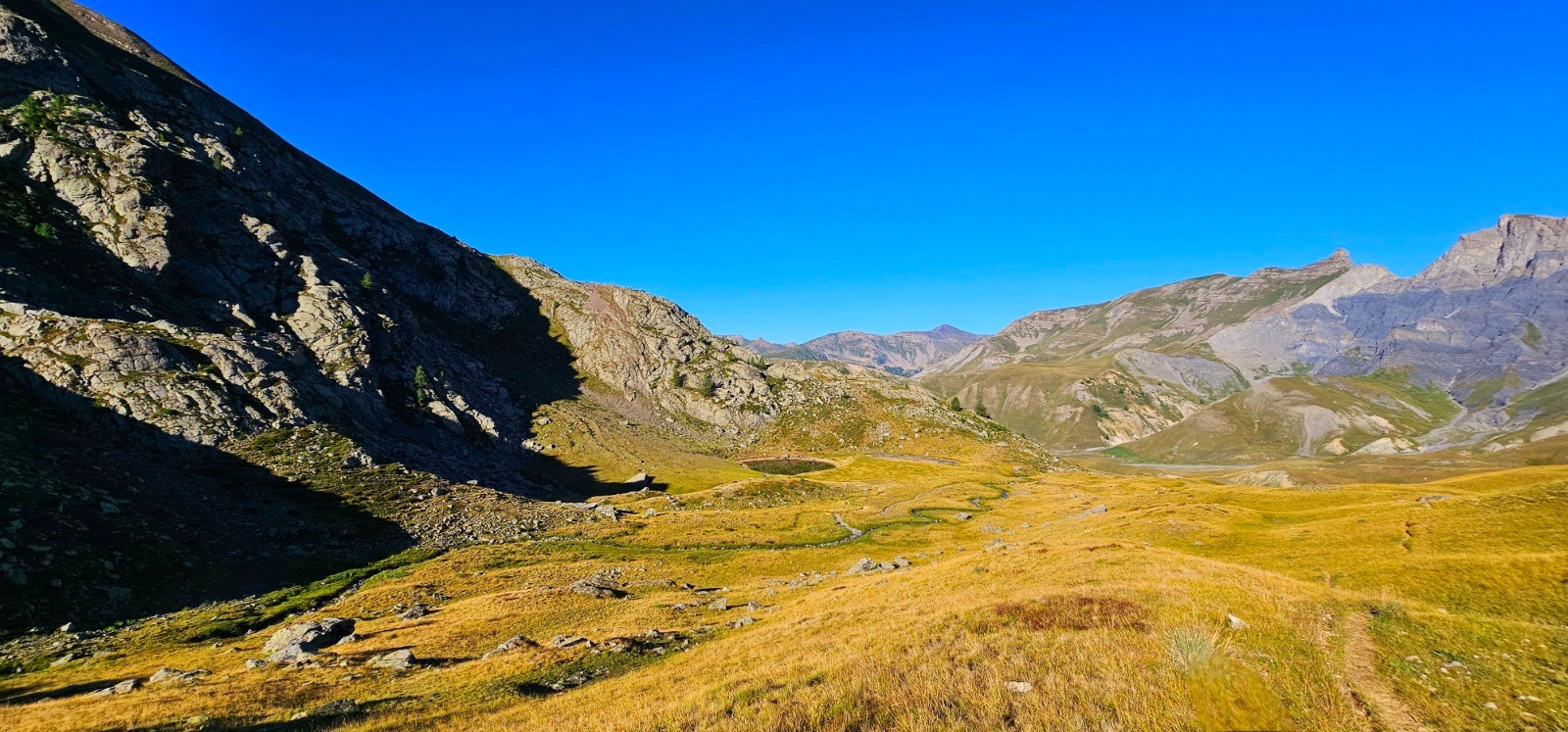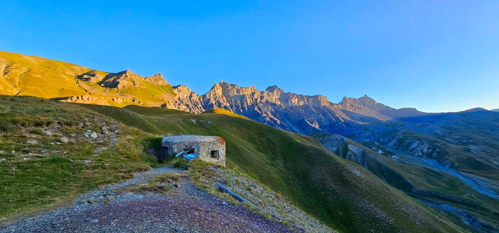 NB : la distance évoquée prend en compte une petite extension optionnelle en boucle réalisée lors de la phase finale, reliant le col des Fourches au mont des Fourches (2342 m) et son fortin datant de 1898. Soit 1,64 km avec d+ 99 et d- 77 m pour visiter cet ouvrage dominant le vallon du Pra et la route de la Bonette, dont la silhouette intrigante se signale de loin.
