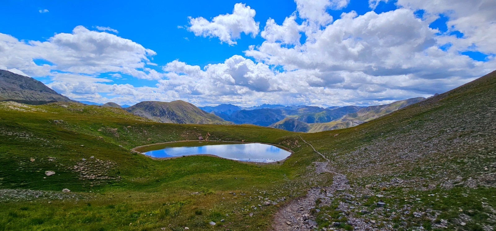 Rando effectuée le 20/08/24.Itinéraire comportant une partie hors piste lors de l'approche et de l'ascension du Mont Aiga ainsi que sur le cheminement de la ligne de crête jusqu'au col de Pouriac, qui ne présente cependant aucune réelle difficulté en raison de la nature même du terrain que l'on parcourt très facilement avec des choix d'orientation naturels sur des pelouses d'herbe rase, qui décuplent le plaisir de la "découverte".