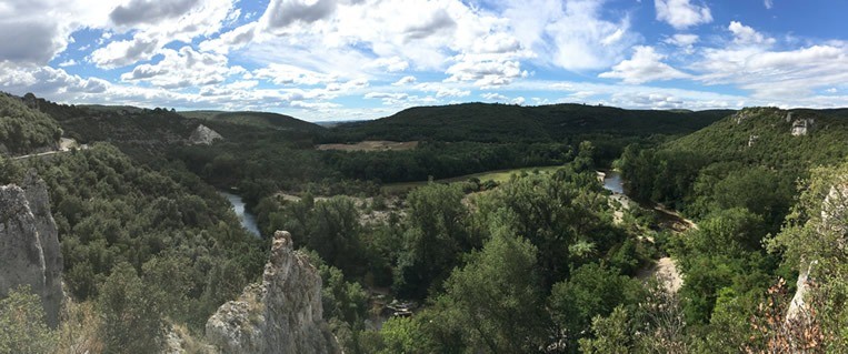 - Sur Issirac, bifurquez par l'épingle dans le centre du village. De l'autre côté, une petite esplanade vous présente un panorama sur les collines ardéchoises (s'y trouve derrière les fameuses gorges de l'Ardèche)