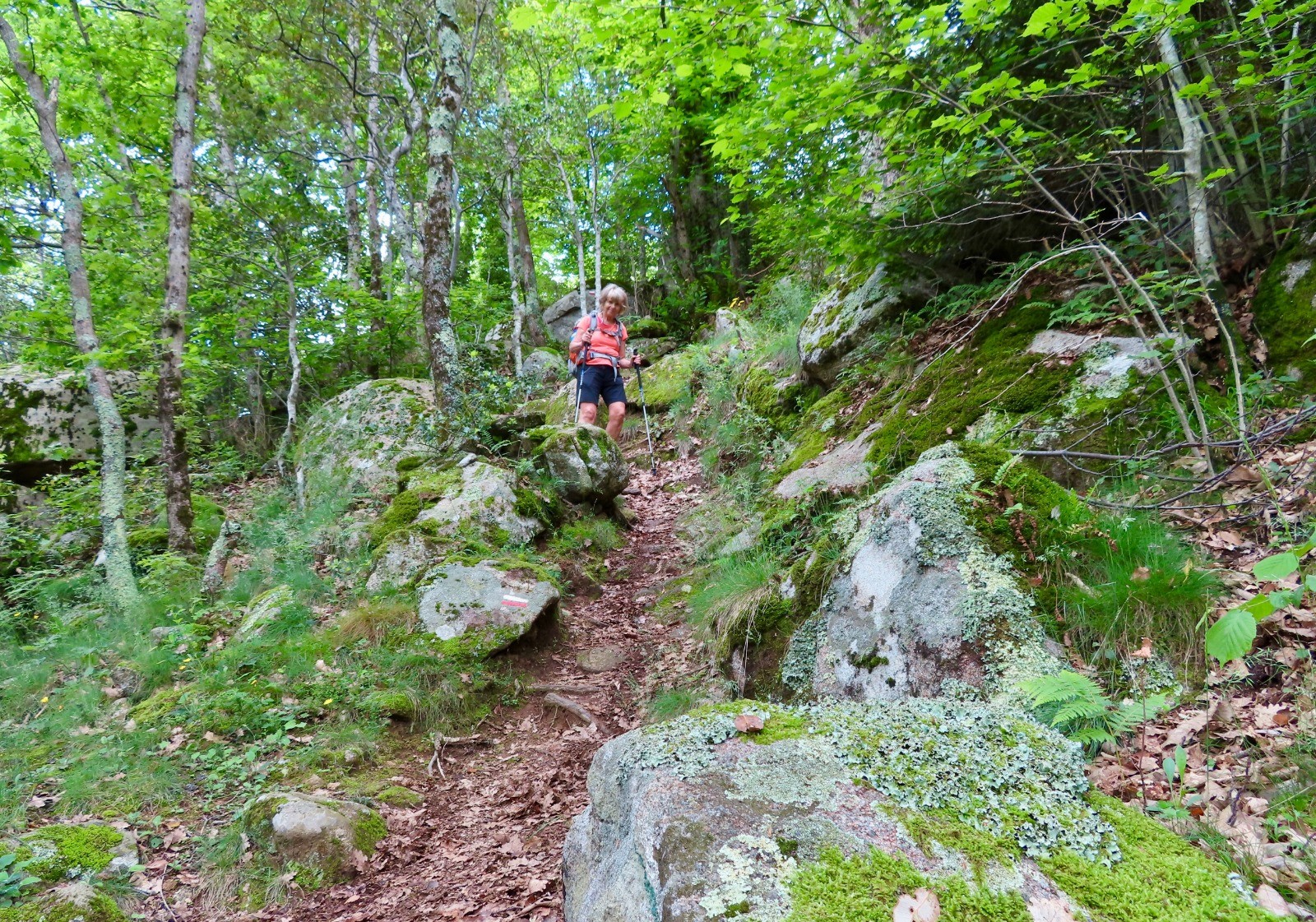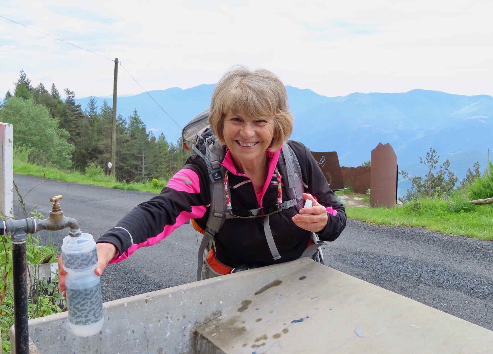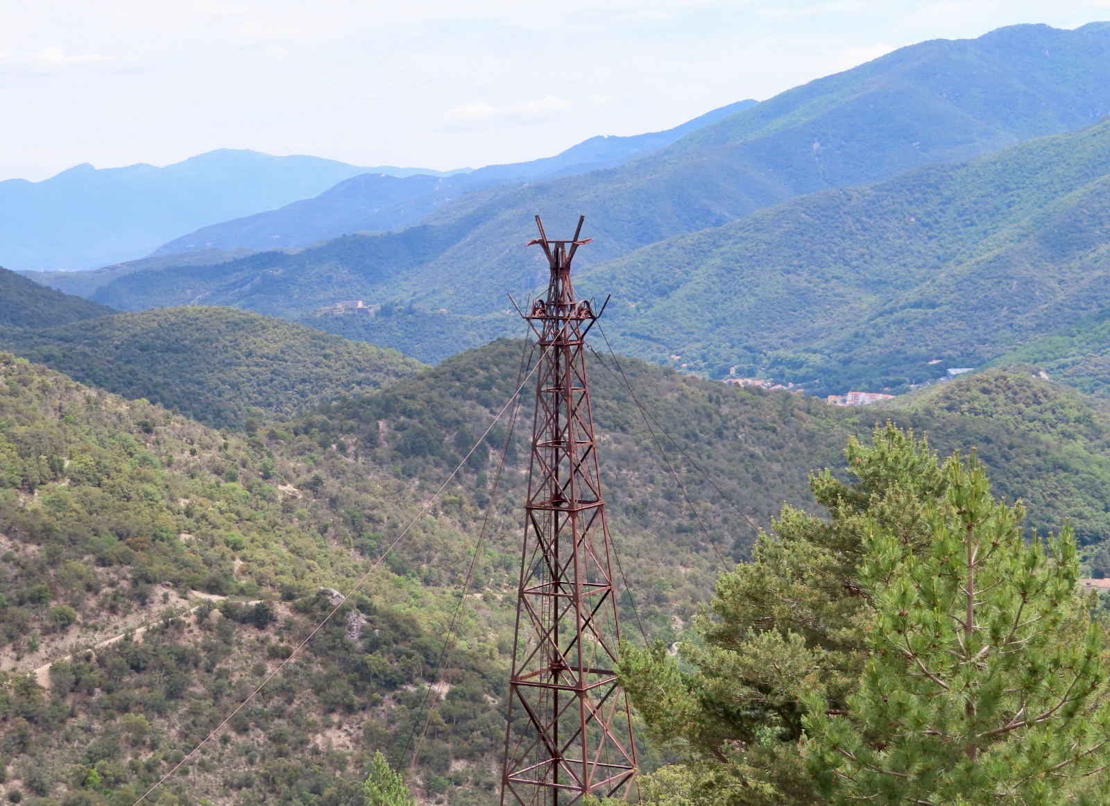 Au col de la Descarga, commencer la descente du GR10 sur un sentier verdoyant avec vue sur la tour de Batère. Au fil de la descente le sentier est de plus en plus rocailleux avec de nombreuses traces du passé minier : câbles semi-enterrés, pylônes rouillés du câble aérien, l'ancienne gare d'aiguillage de Jacouty ...