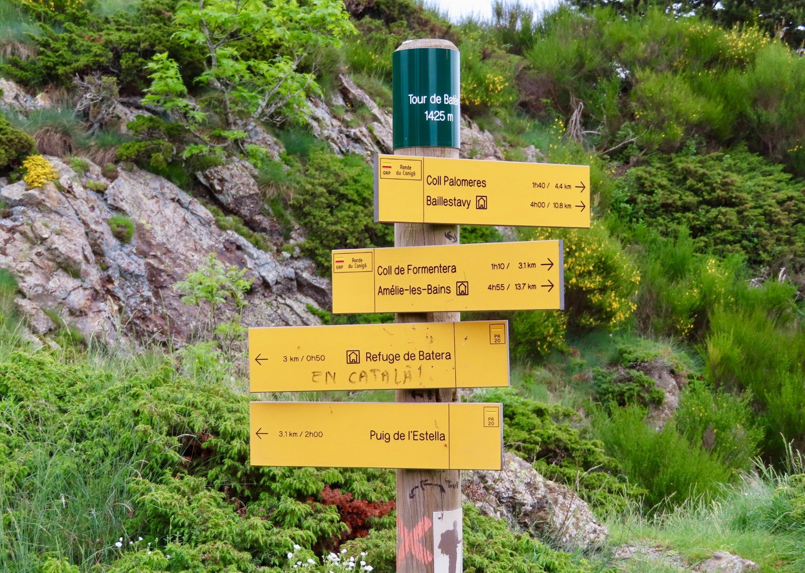 Amélie les bains - Refuge de Batère : Une première montée par les villages balcons du Valespir, Palalda et MontBolo situé à 600 m d'altitude avec une vue sur Amélie-les-Bains. Continuez la progression en suivant le balisage du GRP de la Ronde du Canigou. Un beau sentier coloré par le col de la Reducta avec des vues panoramiques au fur et à mesure de la montée. Au KM9, sur la ligne de crête, suivre jusqu'au col de Formentera l'ancienne voie ferrée ayant servi au transport du minerai de fer extrait dans le massif du Canigou.