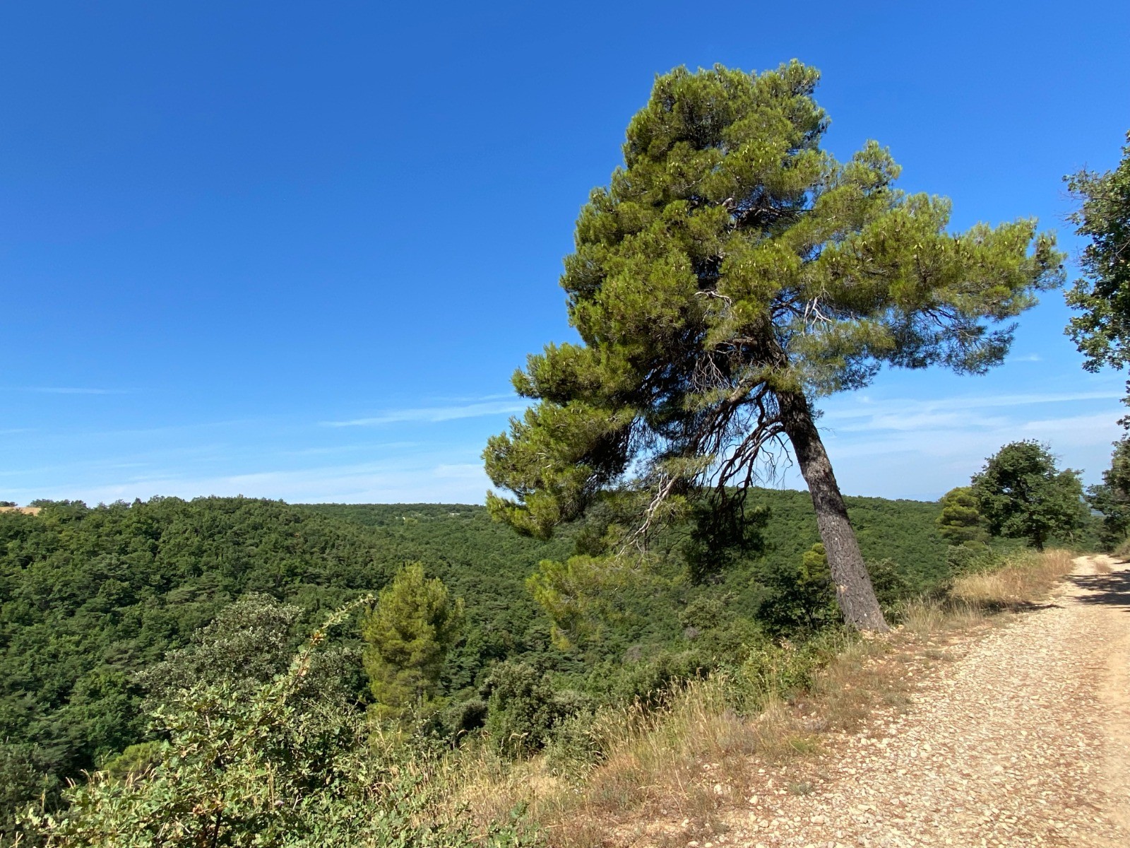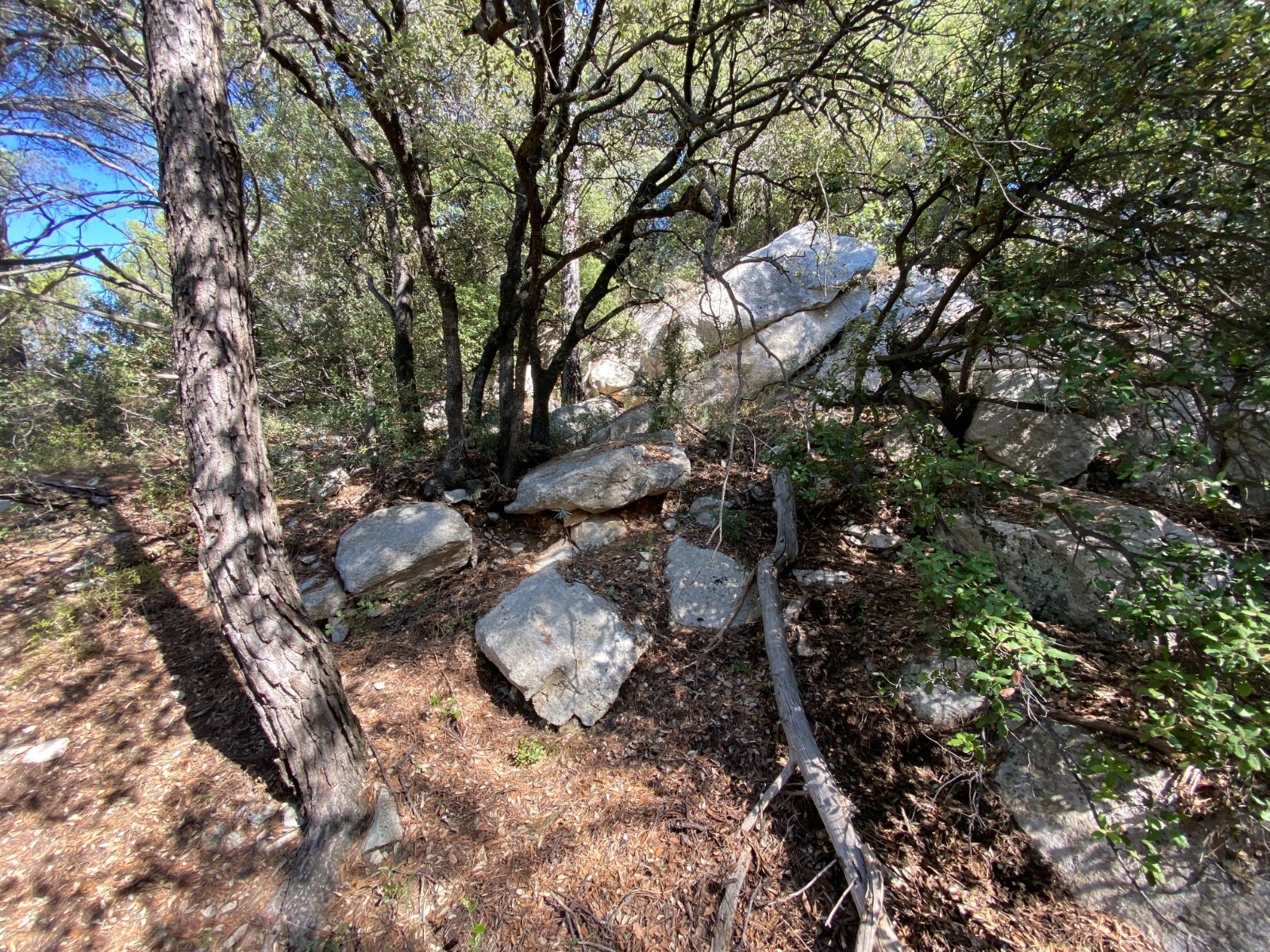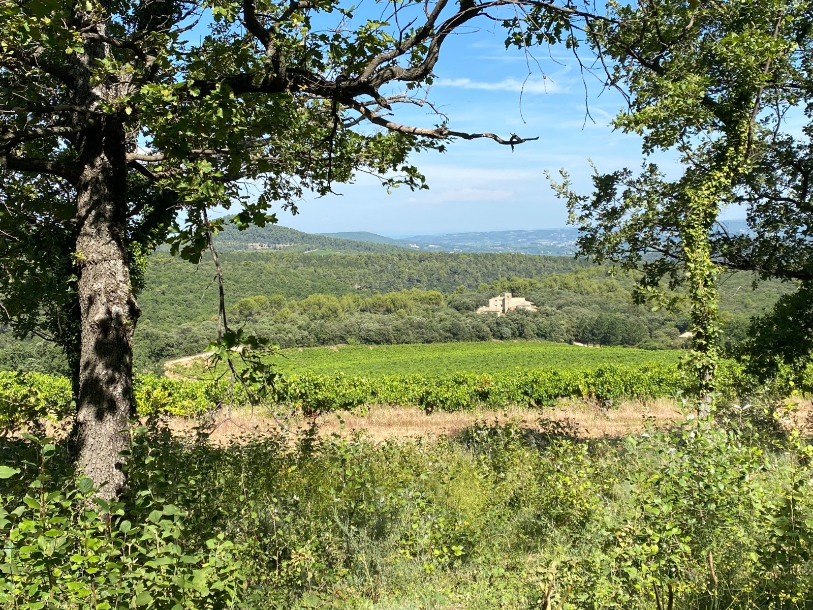 Végétation très classique avec chênes verts et de temps à autres des châtaigniers.