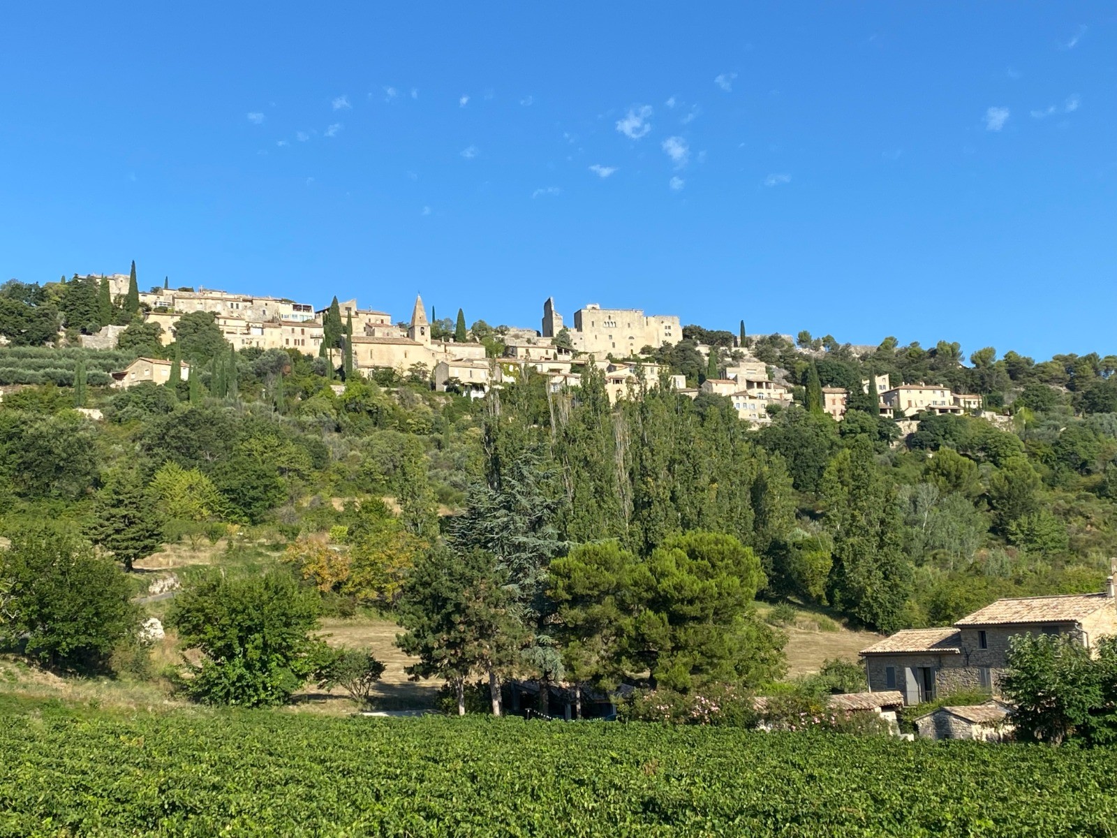 Vous pouvez admirer un point de vue panoramique sur la plaine de l’Ouvèze, les Dentelles de Montmirail, le Mont Ventoux.