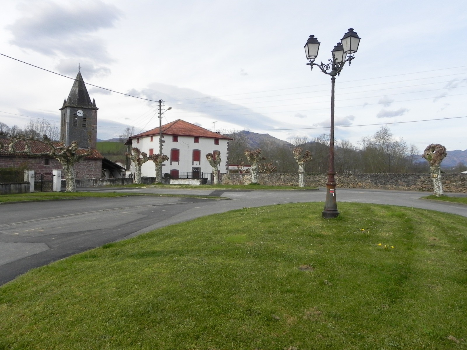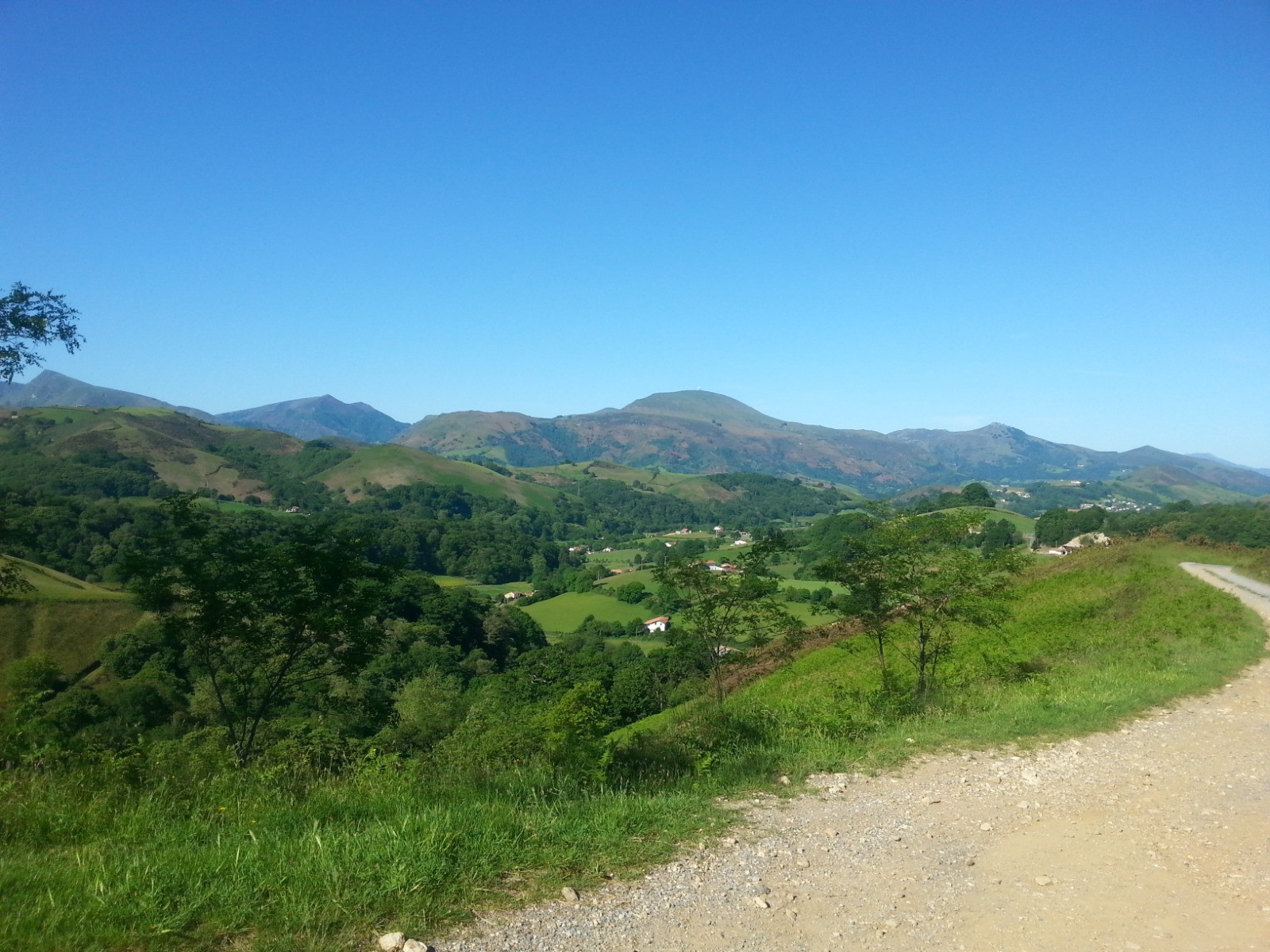 Retour en arriére: carrefour de Pasteroenea . On peut également abréger l’étape en descendant prendre le train pour Bayonne à la petite gare d’Itxasou. Prendre à gauche en descente, puis tout de suite à droite la route( chemin de