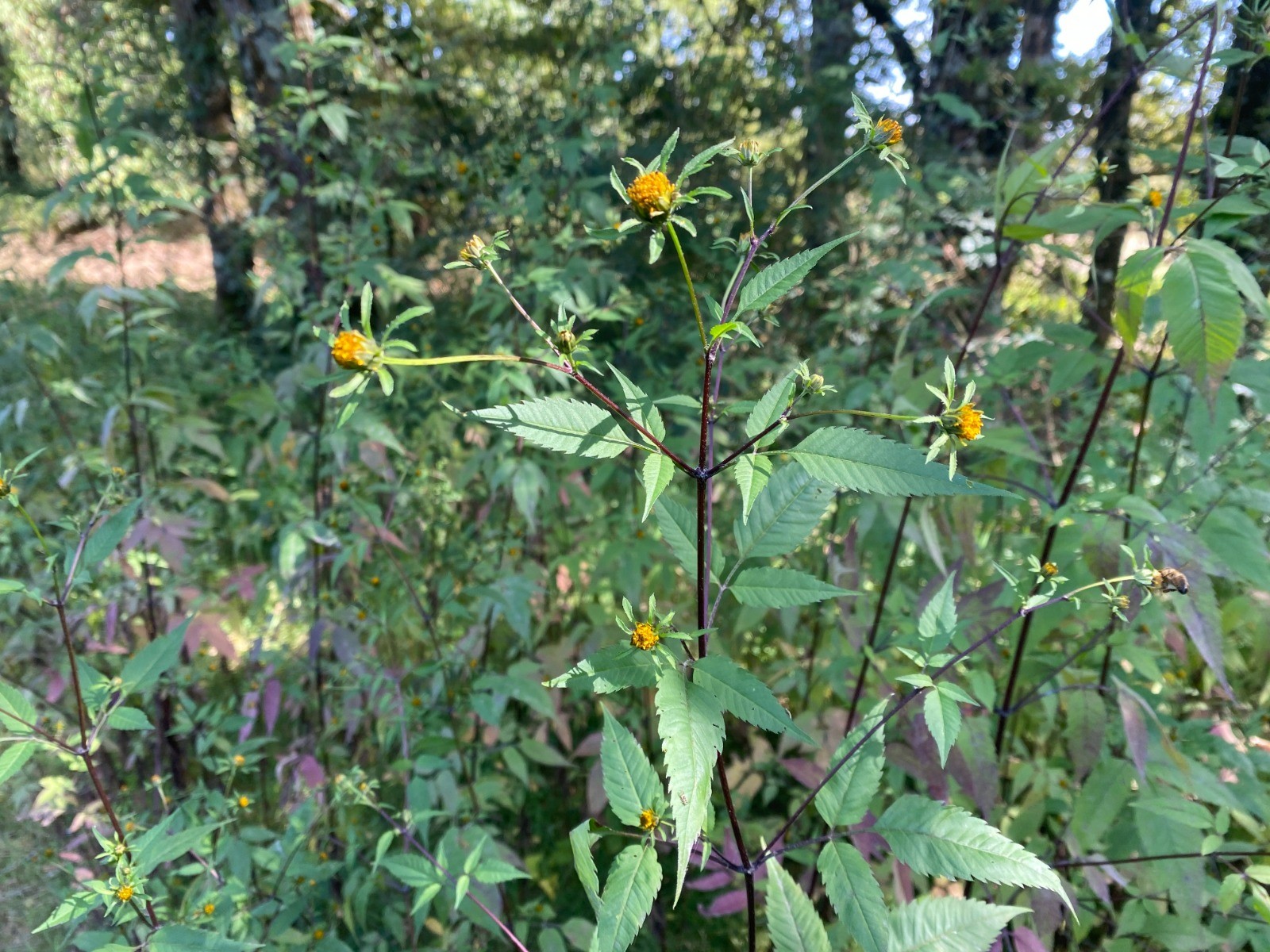Les quelques chemins sont envahis par le Bident feuillu ( photo no 6 ) qui est une espèce de plante à fleurs originaire d'Amérique du Nord, invasive en Europe.