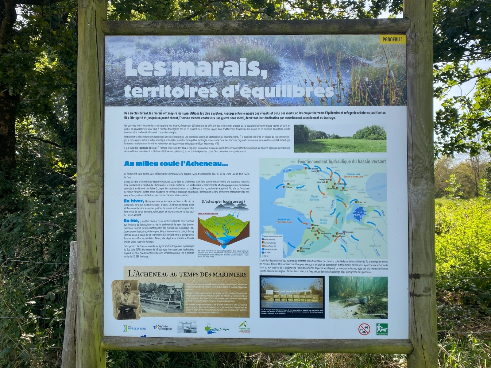 Ces marais s'étendent principalement autour de la rivière Acheneau, un affluent de la Loire, qui traverse ces terres inondables avant de se jeter dans le lac de Grand-Lieu.