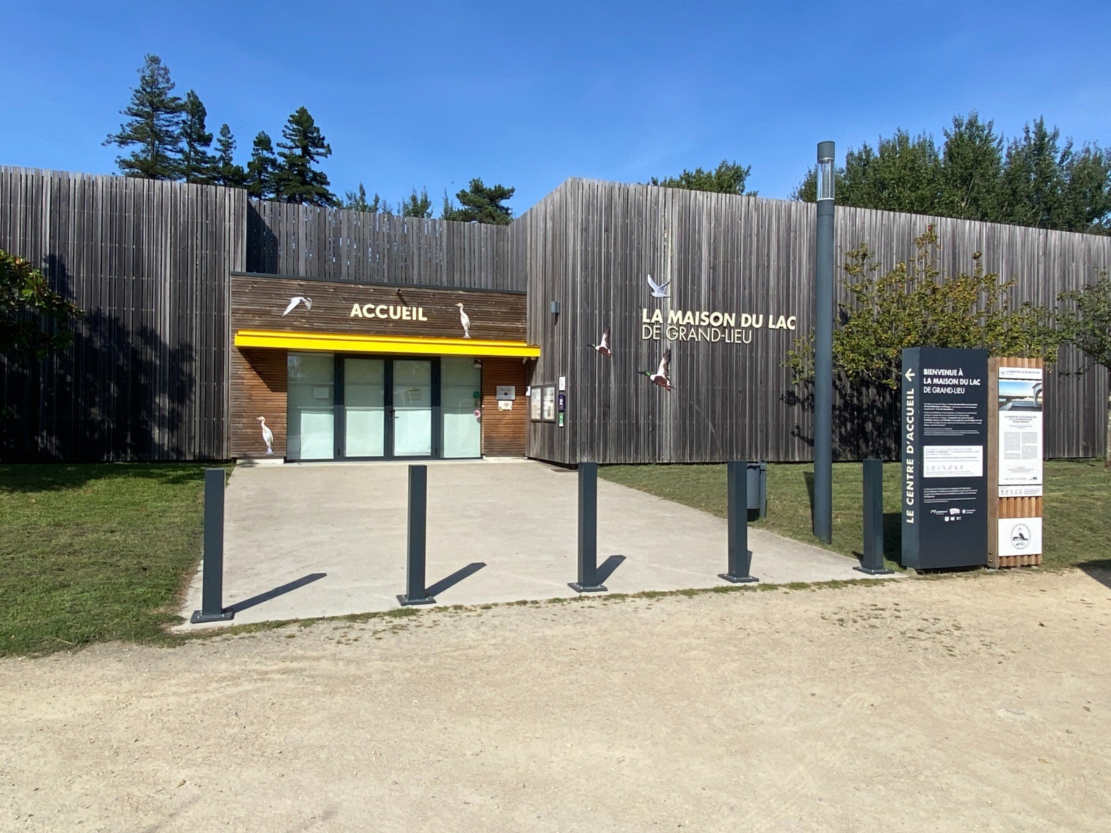 A la sortie de Bouaye sur la gauche : la maison du lac qui est un espace unique dédié à l’une des plus belles zones humides de Loire-Atlantique et d’Europe : le lac de Grand-Lieu ! ( photo no 7 )