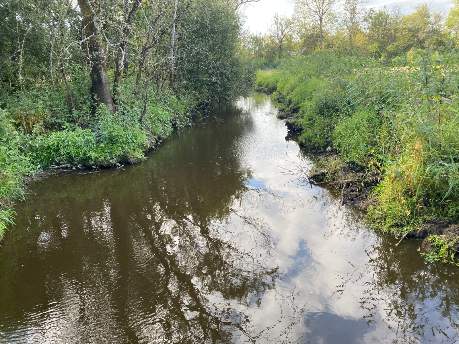Le paysage est dominé par des étendues d'eau peu profondes, des prairies humides, des roselières et des saules.