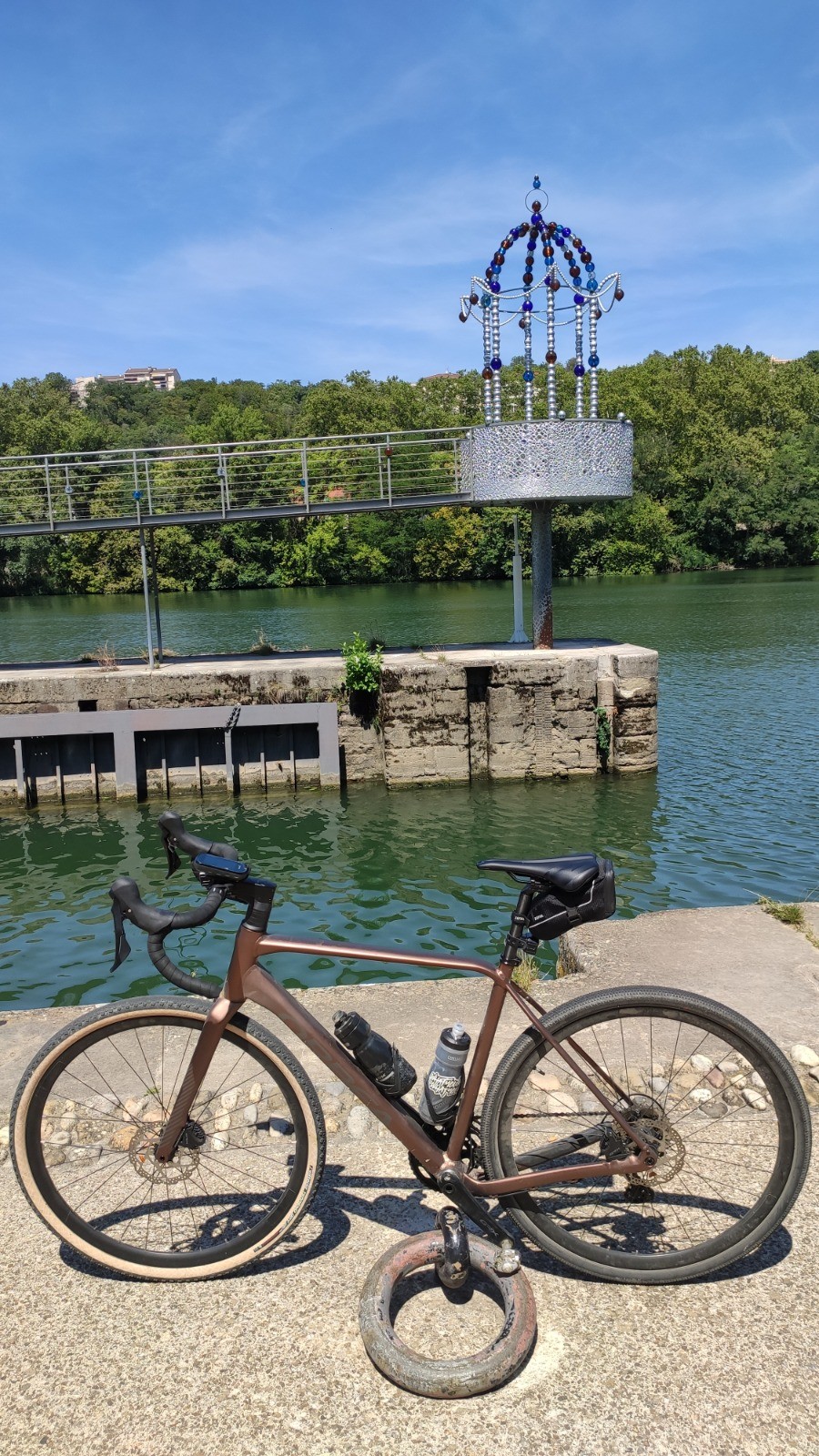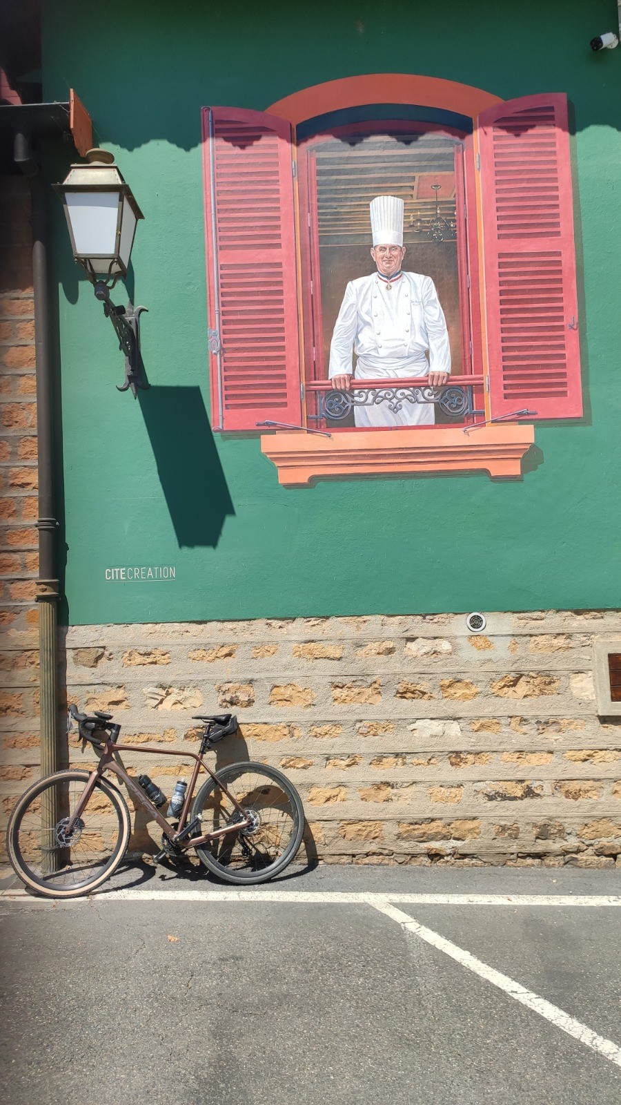 Je ne peux pas rentrer à TDL sans prendre le tunnel Mode Doux sous la Croix-Rousse, aller voir les péniches ... Toutes ces digressions urbaines sont facultatives ( j'ai cherché - et trouvé- comment passer le noeud de Perrache en Vélo sans me faire écraser, c'est bien fait le plan-vélo de la ville, encore une fois chapeau!). Malgré les 600 de D+ dans le Vieux-Lyon , je prends la montée du Chemin neuf (voie protégée pour les vélos, très bien) passage aux Nuits de Fourvière, aux façades trompe-l'oeil de la Sarra, à L'Hôtel de Fourvière ...Retour par la voie verte à TDL ... Une bien belle promenade