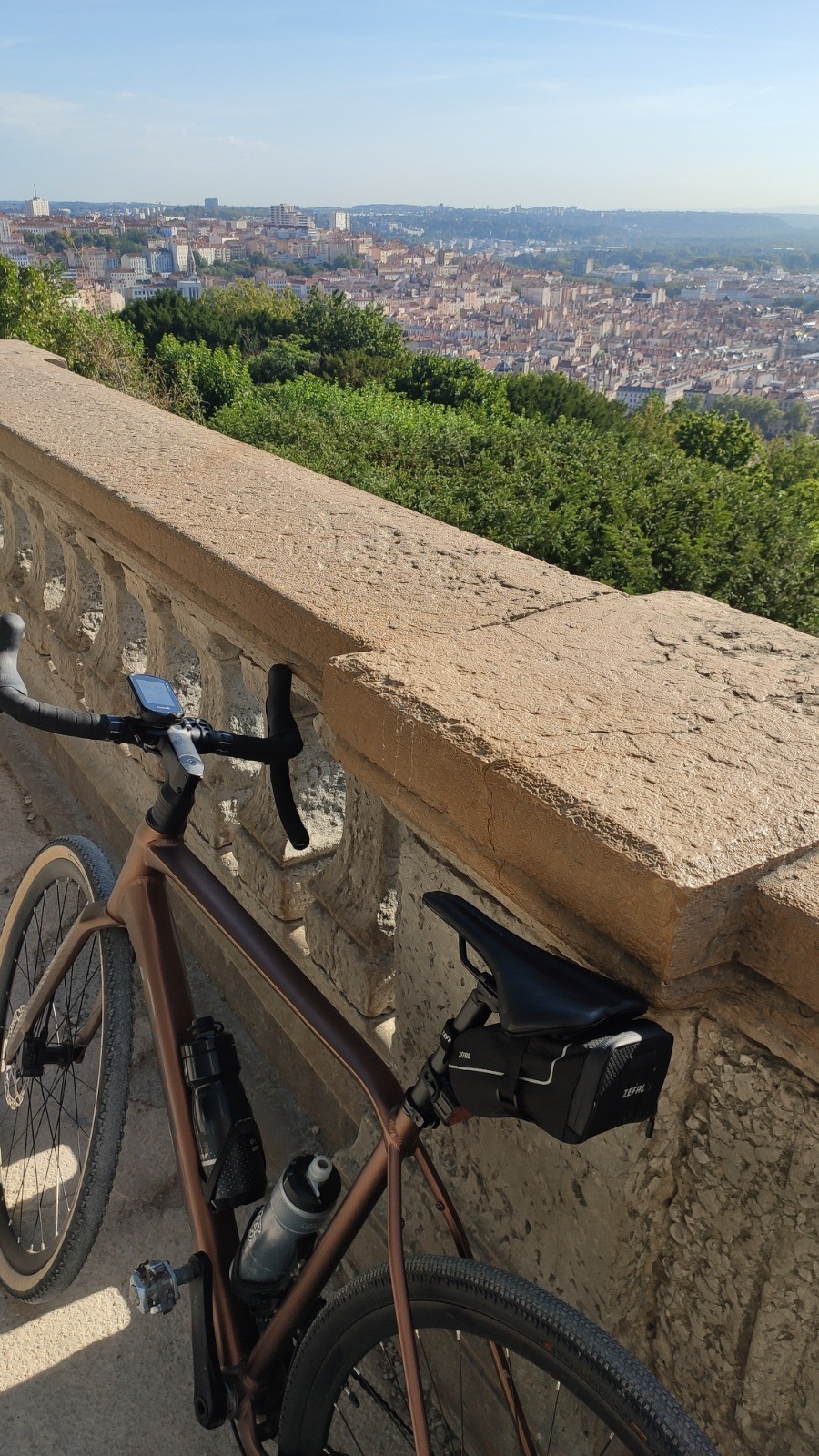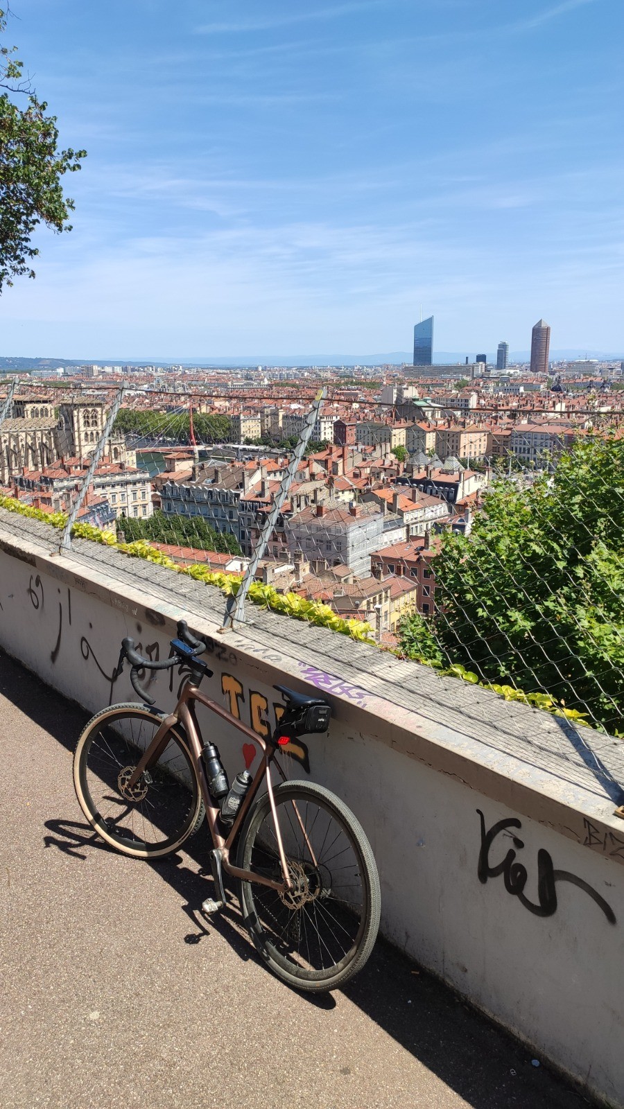 Partir de l'Ouest Lyonnais pour rejoindre les vastes secteurs gravel de La Dombes c'est possible ...Et de façon amusante: de TDL, chemin de la lune (voie verte) jusqu'à la sévère grimpette derrière le cimetière de Loyasse, puis Passerelle des Quatre-vents, Descente de Fourvière via les Jardins du Rosaire ...Ensuite un peu de Quai de Saône, puis grimpette à la Croix-Rousse par la montée de la Butte (ça change des Esses).