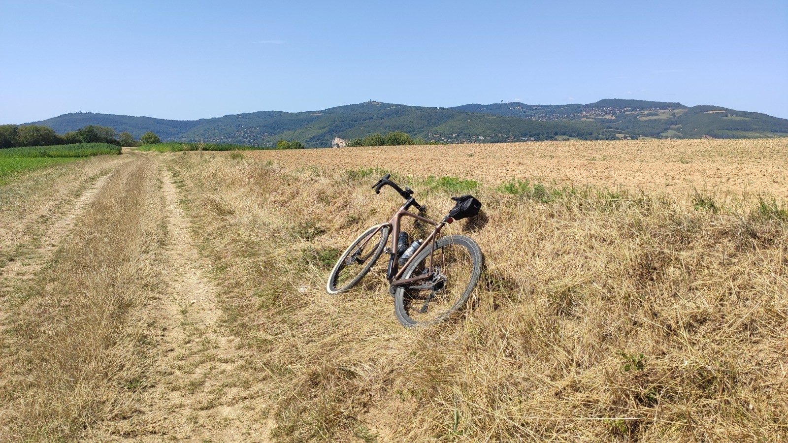 C'est là qu'on échappe à l'urbanité pour entrer dans ces vastes étendues Gravel ( chemins blancs, lisières de prés, grands espaces maraîchers ) c'est un superbe roulage, Les Echets, Mionnay, Montanay .... Croisé un chevreuil pas farouche, des tracteurs, la voiture jaune du facteur, 1 gravel et c'est tout dans cette pampa dépaysante et parfois si proche de le civilisation ( Ligne TGV, A422 )
