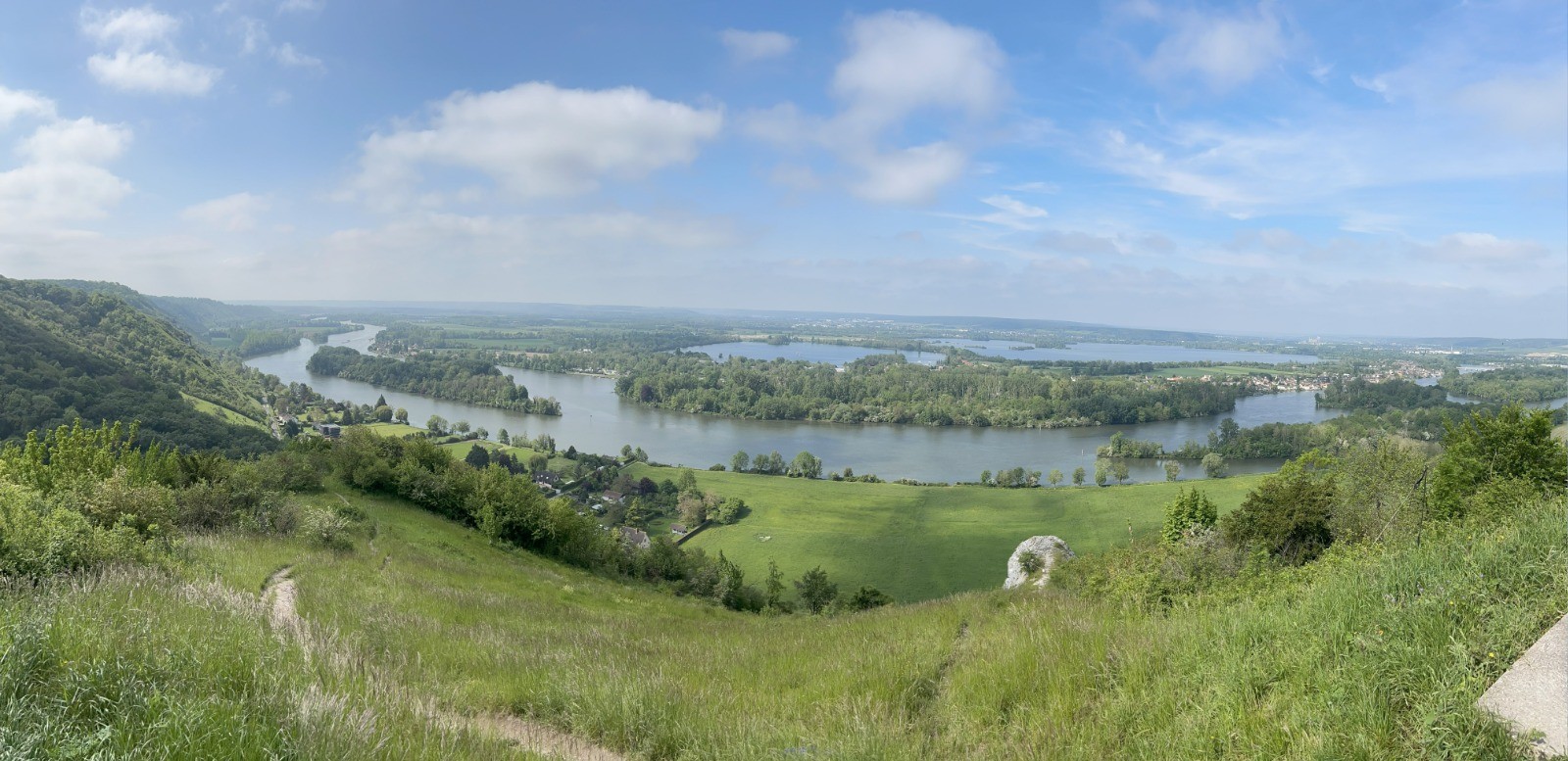 Voici un parcours qui vous fait passer de l'Eure à la Seine, et qui emprunte une bonne partie du GR2, qui surplombe les plus belles boucles du fleuve, après les Andelys. Et pour avoir de belles vues panoramiques, il va falloir monter, et faire travailler un peu les mollets.