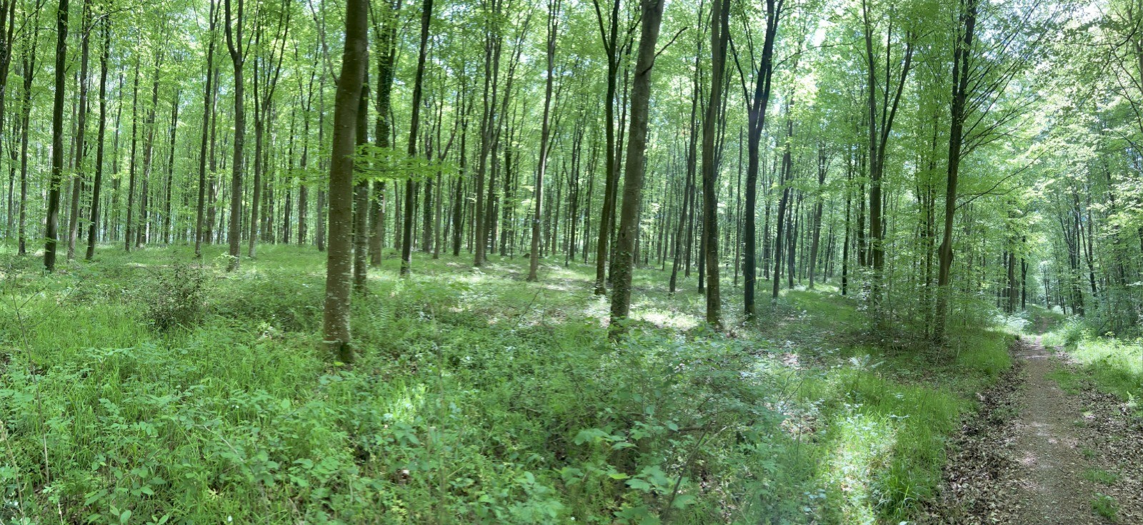 - Montez dans la forêt et au premier carrefour, à gauche pour rester sur le sentier de forêt qui longe la ville