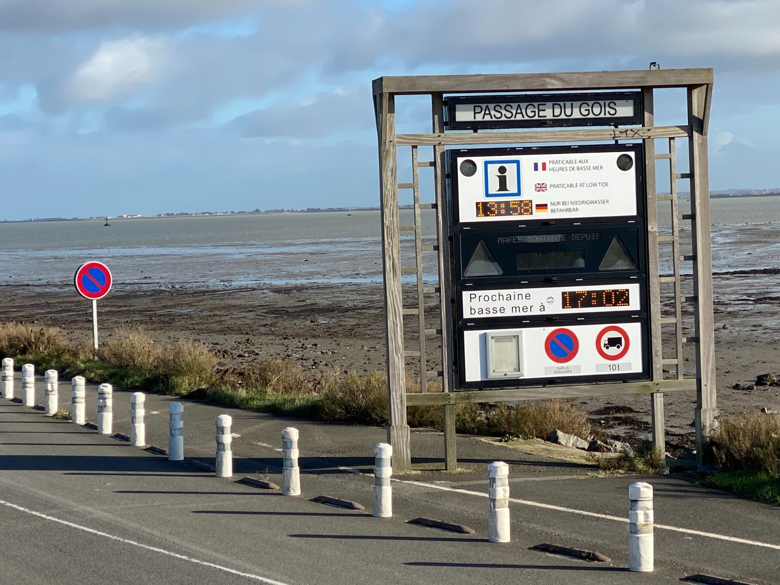 Deux kilomètres et nous voilà devant le fameux Gois ( photo no 4 ) très connu des pêcheurs à pied pour ses palourdes, coques et bigorneaux.