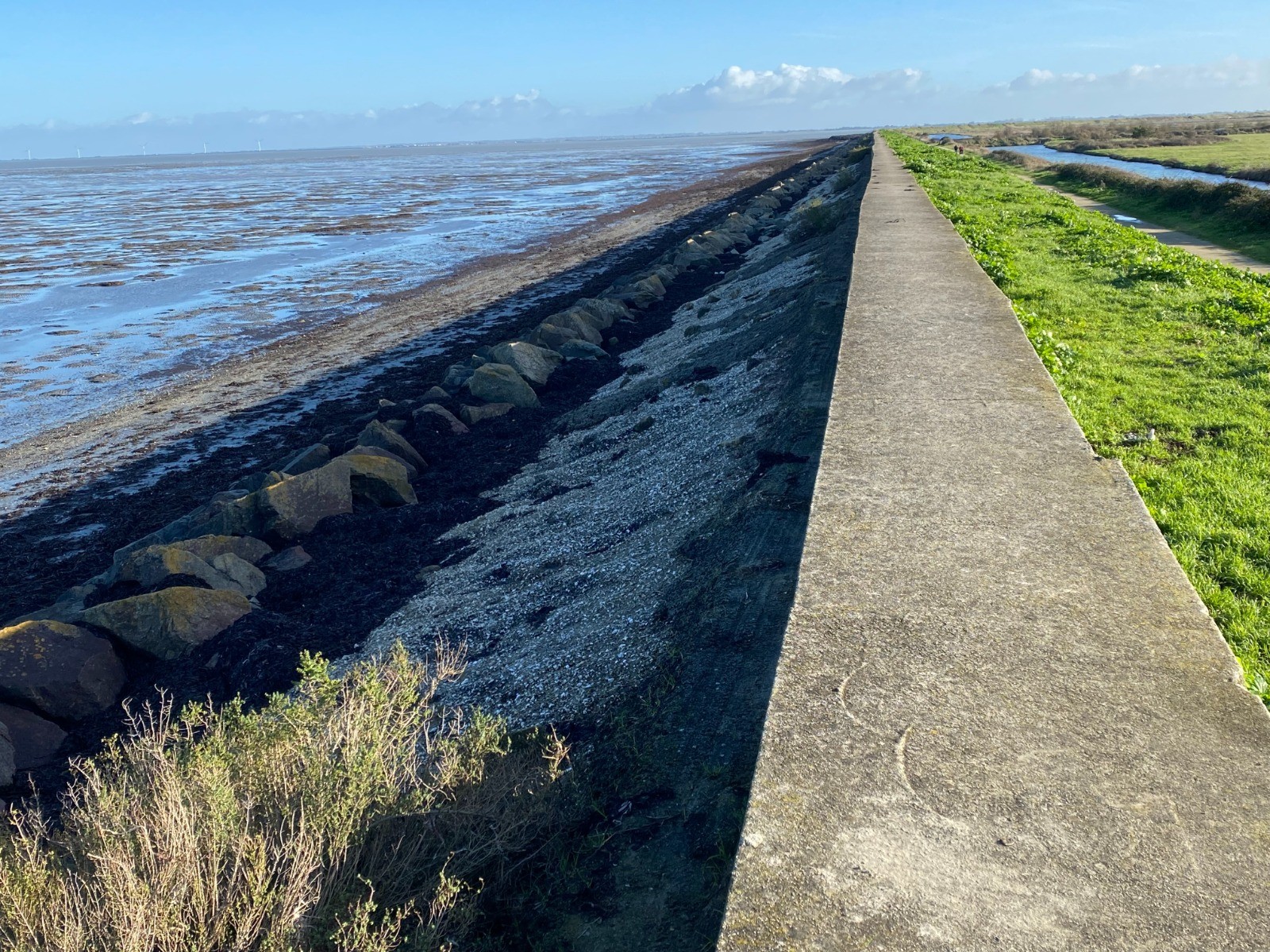 Deux solutions : le suivre au plus près ou monter sur la digue assez large ( photo no 13 ) pour avoir en plus une vue sur le golfe.