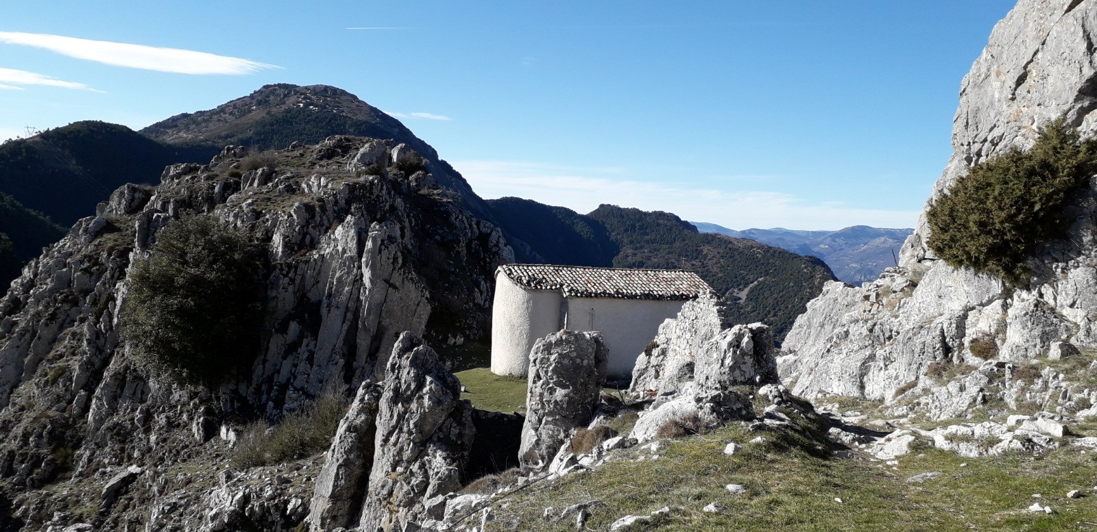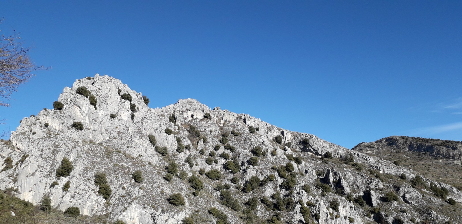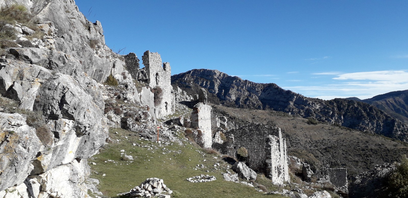 Parcours réalisé le 08/02/21. Sympathique balade axée sur la découverte du hameau abandonné de Rocca Sparvièra délaissé par ses occupants en 1720 avec en toile de fond la légende de la malédiction du site proférée par la reine Jeanne (vous renseigner sur Web). Visite nostalgique qui permet de fouler le silence de ces ruines chargées d'Histoire qui bruissent encore des âmes erratiques des anciens.Voir la chapelle St Michel toujours entretenue et entamer un beau cheminement (accentué) par les crêtes depuis le col St Michel jusqu'aux sommets successifs de la Croix de Gaudissart (1104 m) et de la Pointe de la Sérèna (1191 m). J'ai rallongé volontairement l'itinéraire jusqu'à la balise 207 avant d'obliquer vers le village de Coaraze pour la phase retour mais je vous conseille de le faire dès la borne 205 qui la précède car la descente paraît moins difficile. Vos genoux vous remercieront !