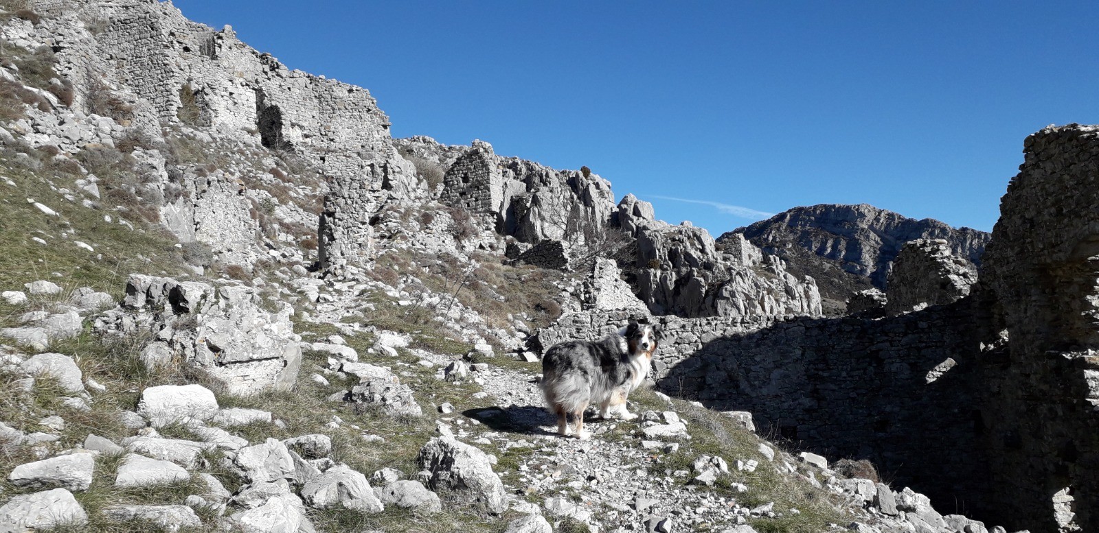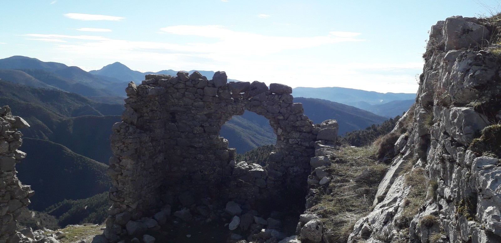 CONCLUSION : Rando à thème sans prétention. Les ruines du "Rocher des Eperviers" sont bien abritées du vent et se prêtent à un bivouac (attention aux chutes de pierres). On distingue au loin le littoral et le tracé en boucle est de mise pour éviter le simple aller-retour préconisé par le guide Randoxygène.