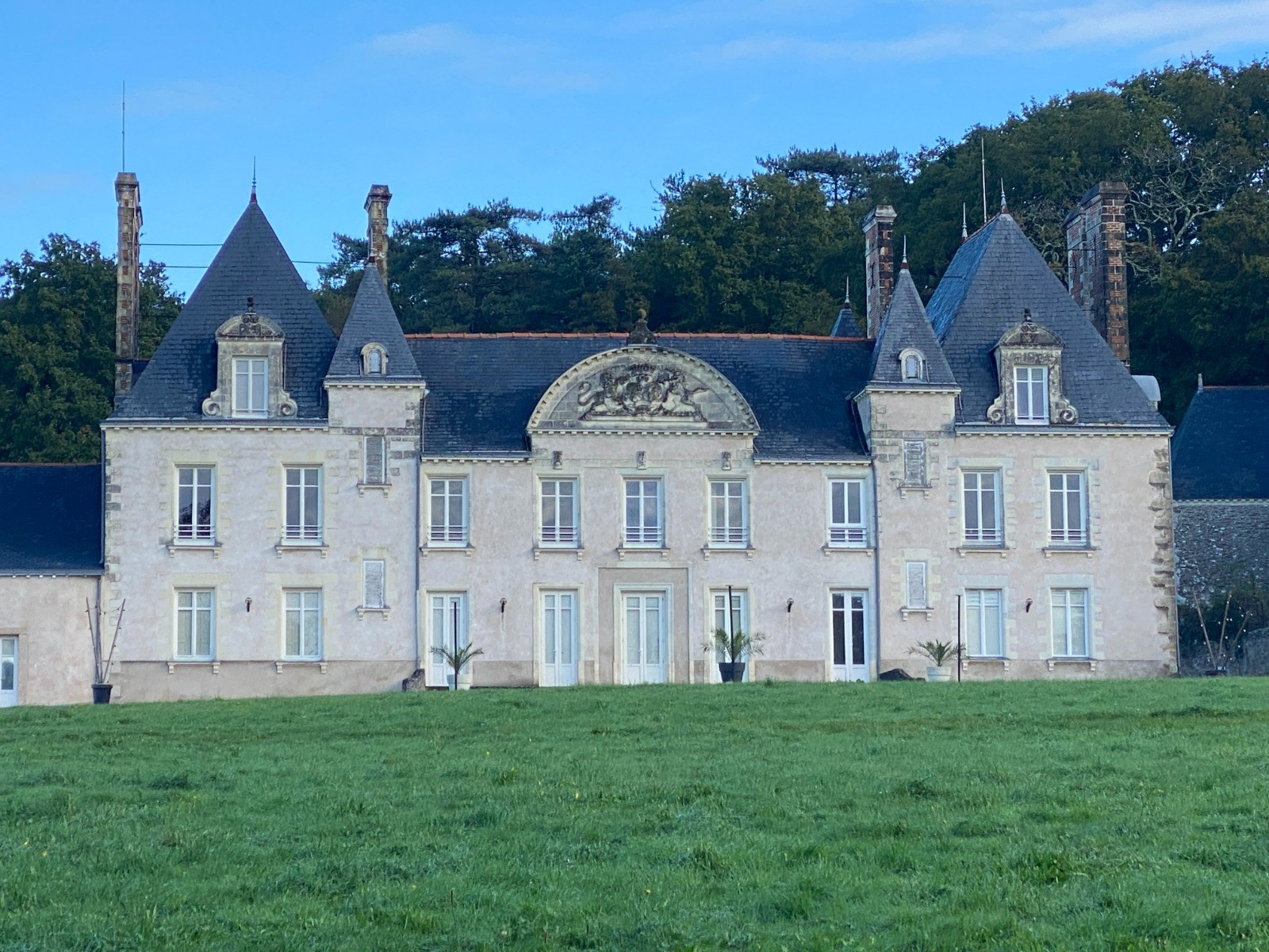Le château, élégant bâtiment du XIXe siècle, se dresse fièrement au cœur du domaine, avec ses pierres anciennes qui contrastent magnifiquement avec la nature changeante autour.