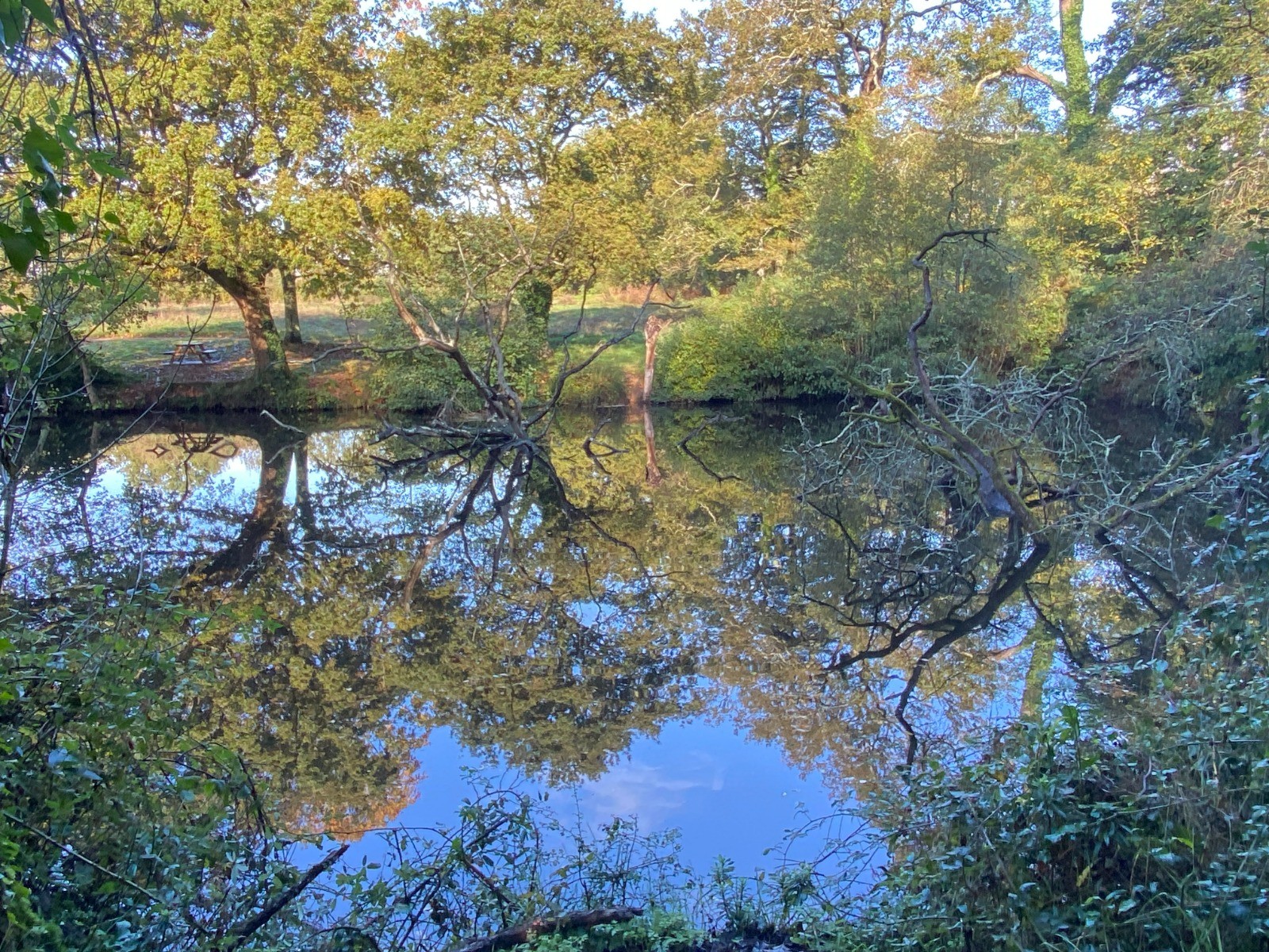 Les étangs paisibles reflètent les teintes automnales renforçant la sensation de calme.