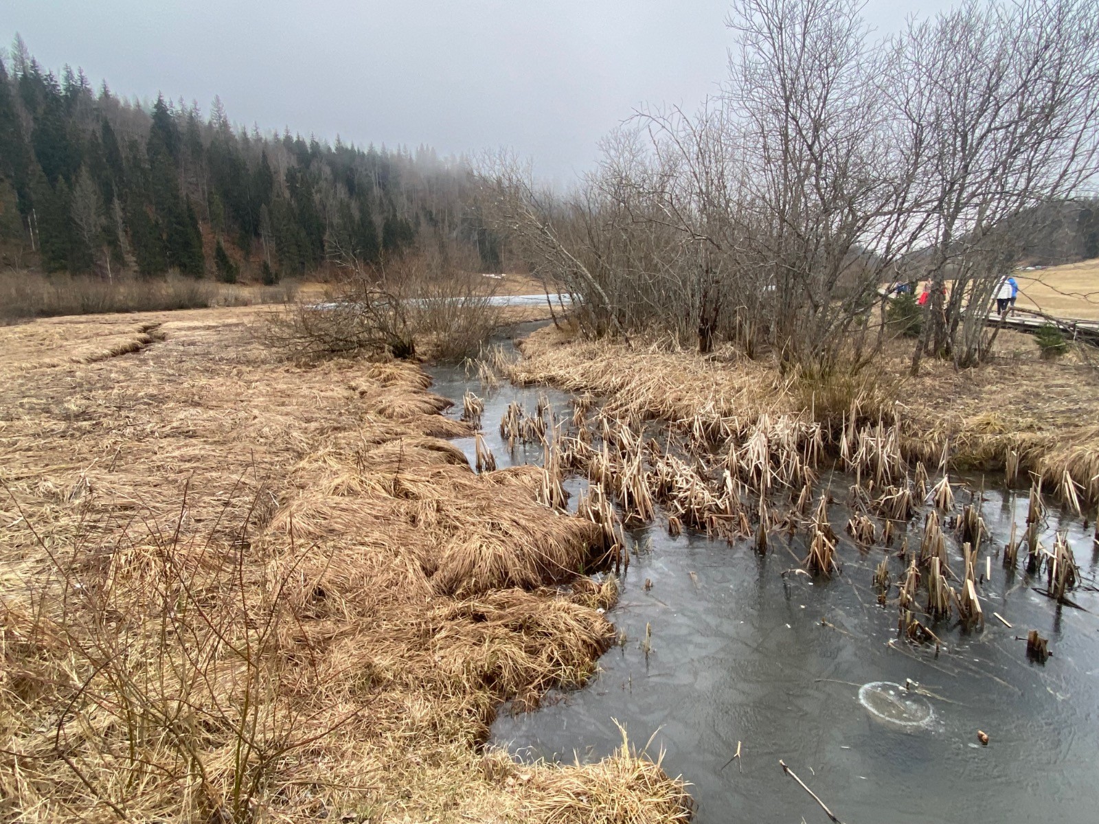 Un sentier en bois permet de traverser les zones humides et la tourbière sans dégrader ces milieux fragiles, ni s'enfoncer dans la tourbe.