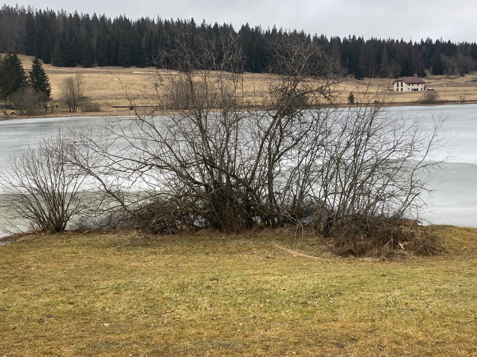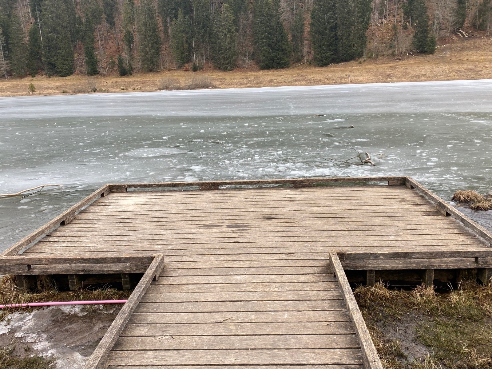 Une très grande partie du lac est gelée.