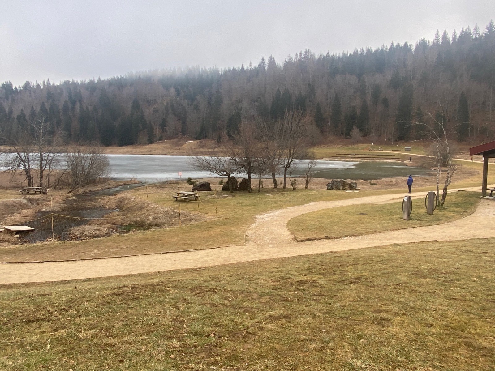 Ou tout simplement balade autour du lac de Lamoura, sur le sentier balisé piéton.
