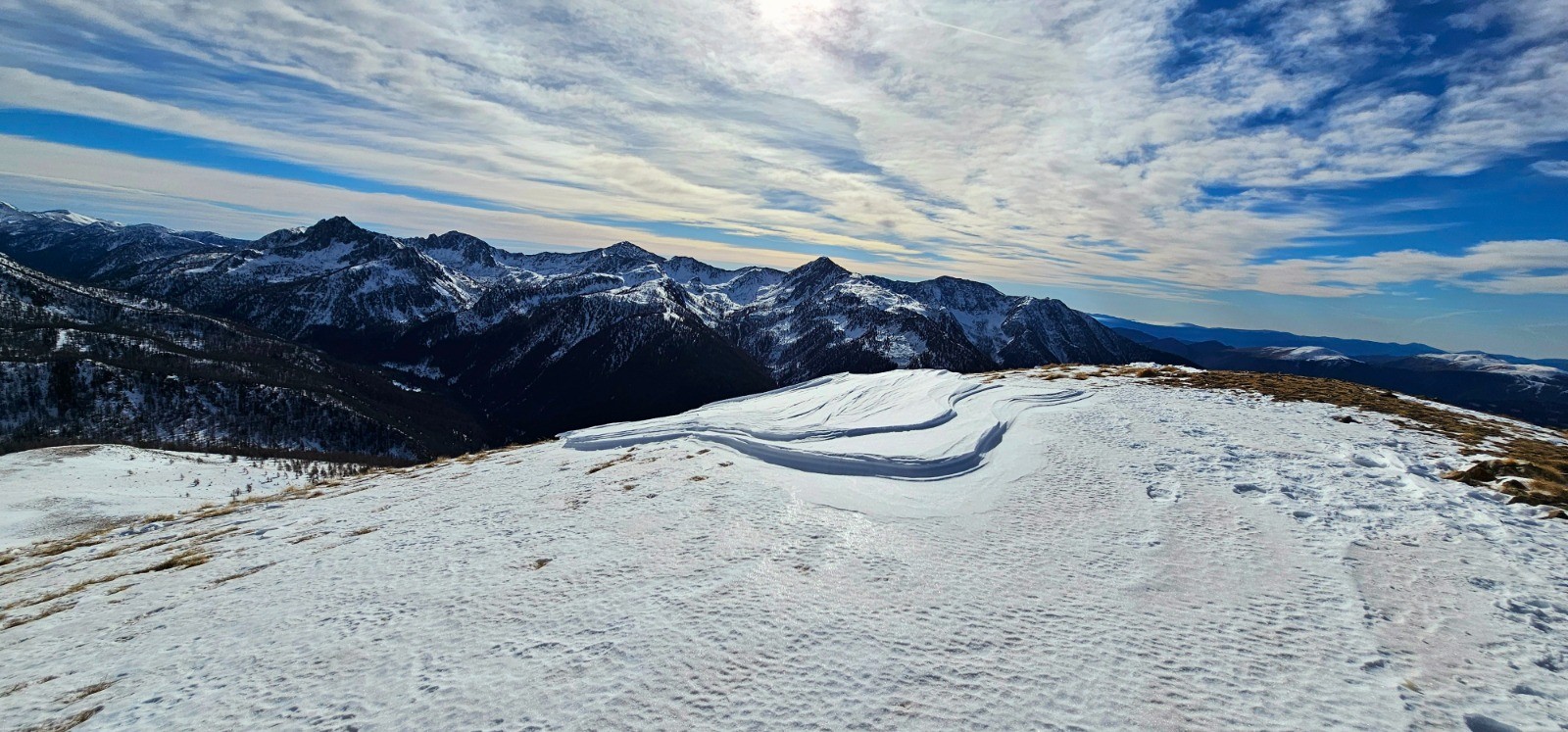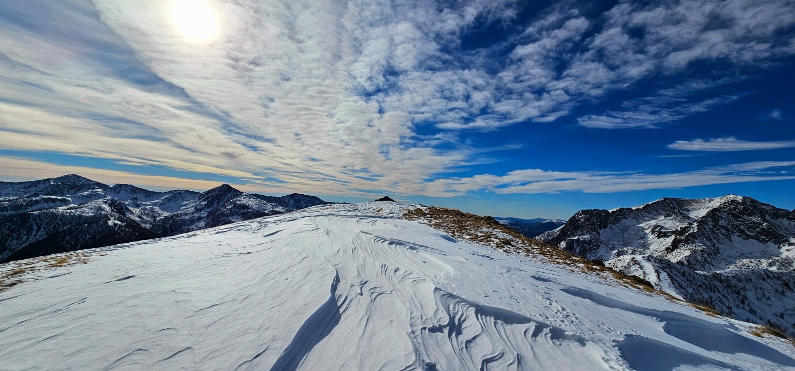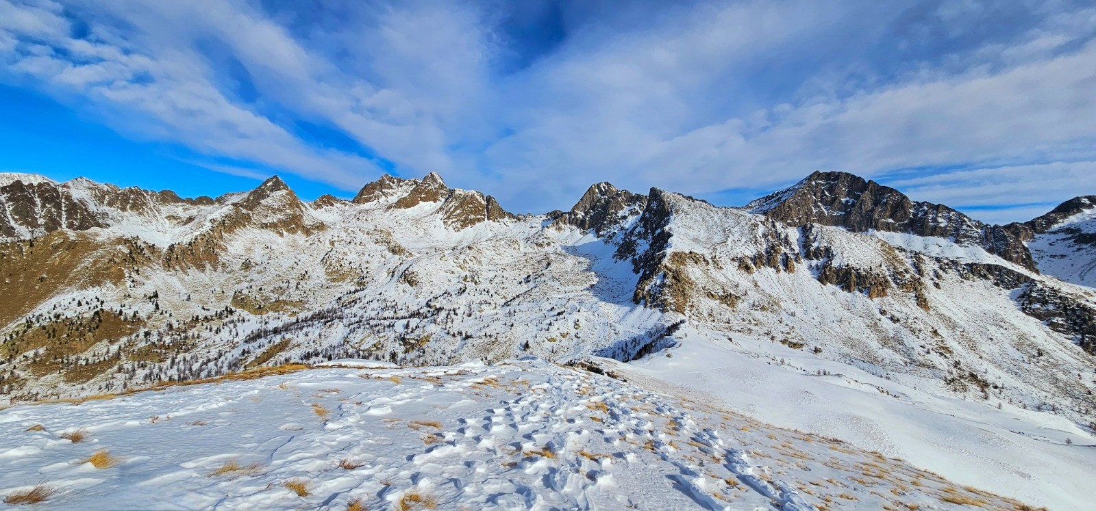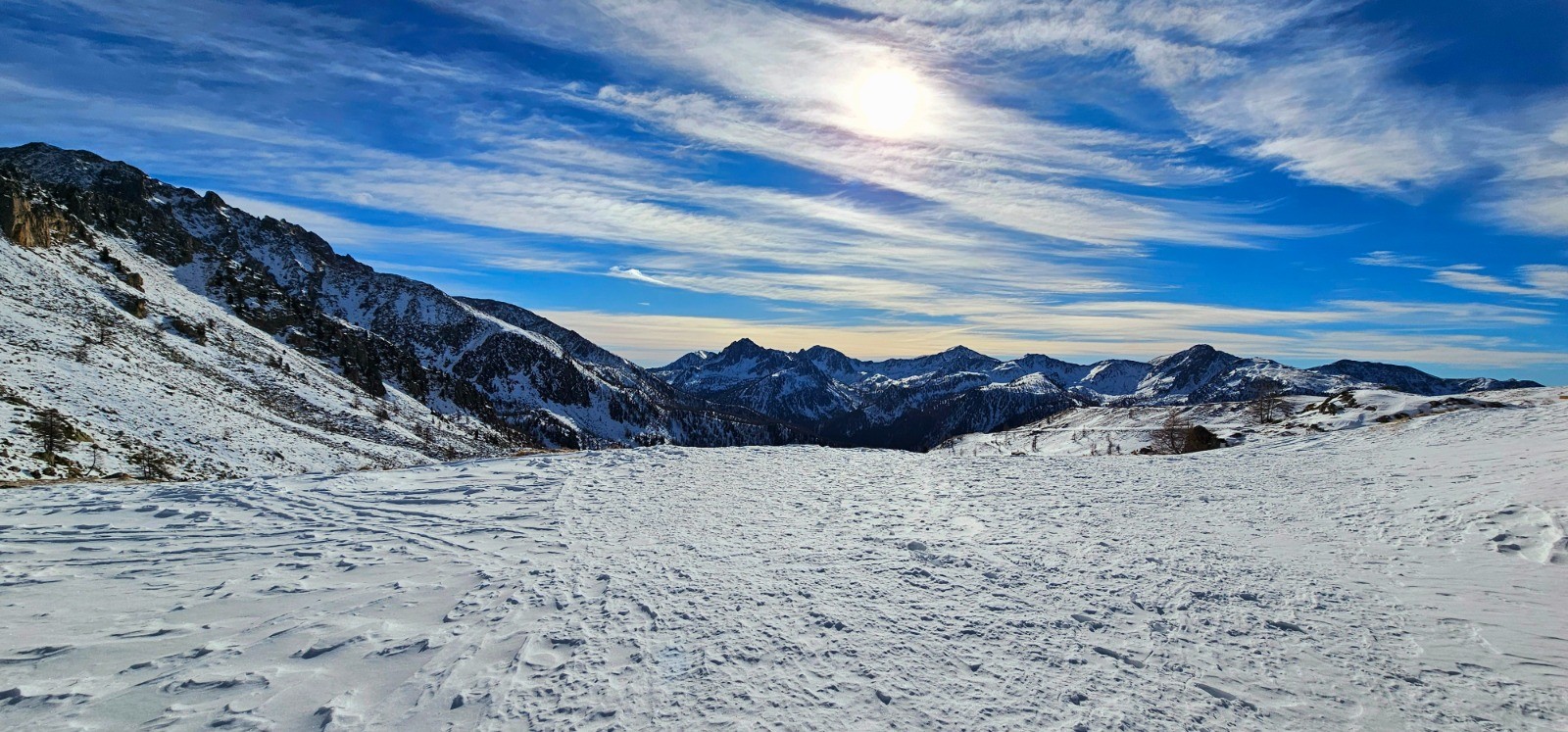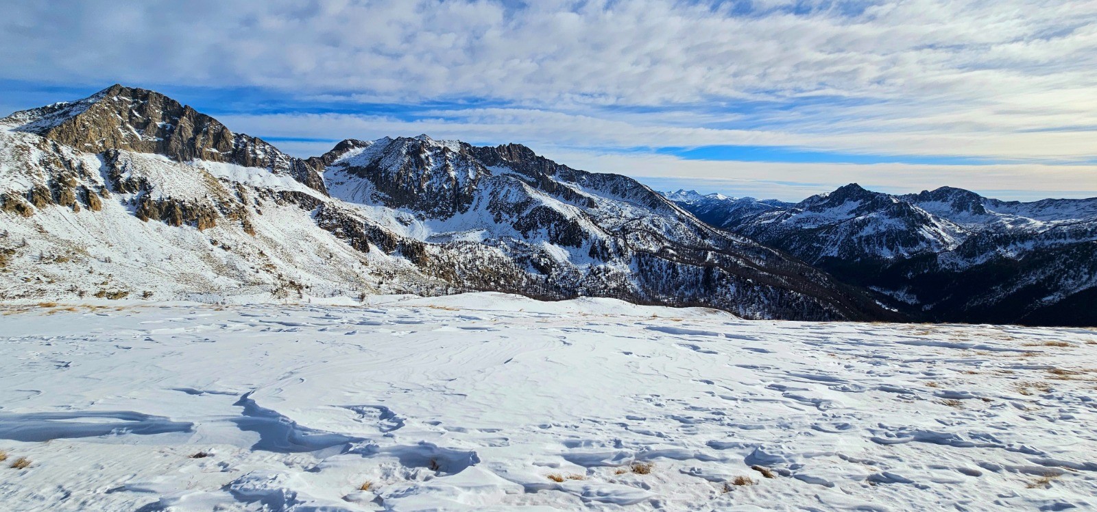 Circuit classique dans la Haute Tinée avec ascension en A/R de la Tête Mercière en tant que point culminant d'une belle ligne de crête délimitant le vallon de Mollières et celui de la station d'Isola 2000, au départ de cette dernière.