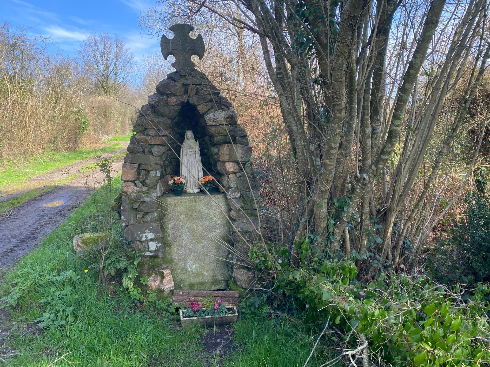 Le randonneur pénètre alors dans un petit bois préservé qui se colore au fil des saisons, passant du jaune modéré des jonquilles printanières aux verts fougères estivales puis aux tons d'automne roux orangés qui animent les feuillages