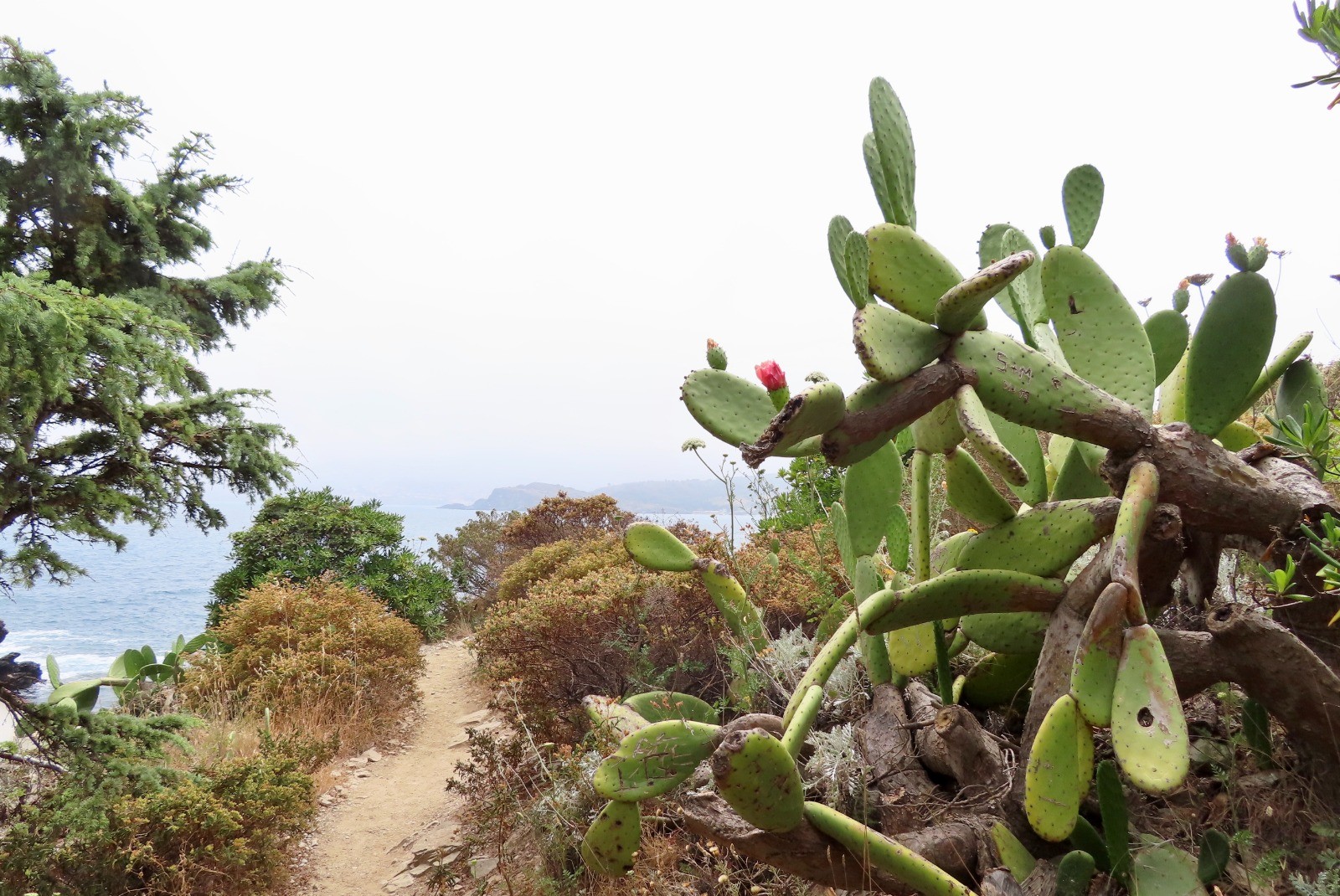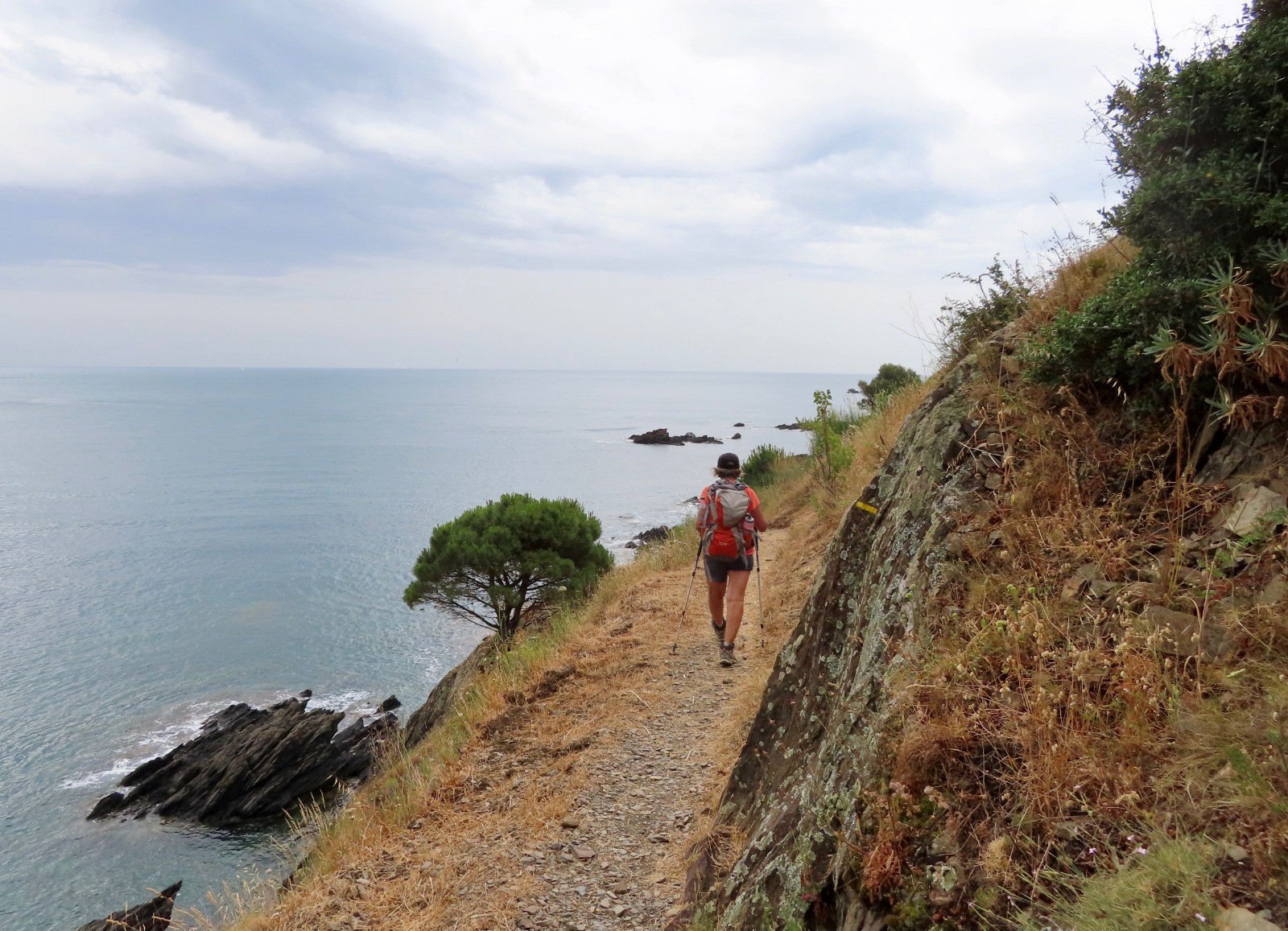 Banuyls - Colera : Après la baie tranquille de Banyuls, le sentier s'élève progressivement entre vignoble et falaises jusqu'à Cerbère. Dernière ville française avant la frontière Cerbère est connue par son célèbre hôtel Belvédère du Rayon Vert, un établissement novateur avec son architecture de style "paquebot". Quittez Cerbère par une ruelle longeant la gare et prendre un sentier escarpé jusqu'à l'ancien poste frontière au col des Balistres. Vue panoramique sur Port-Bou, un ancien village de pêcheurs enclavé entre mer et montagne. Le cheminement s'effectue maintenant sur le GR92 en bord de mer. Après une dernière montée sur un sentier caillouteux avec une vue plongeante sur la gare de Port-Bou, une longue descente panoramique vers le petit port de Colera, fin de l'étape.