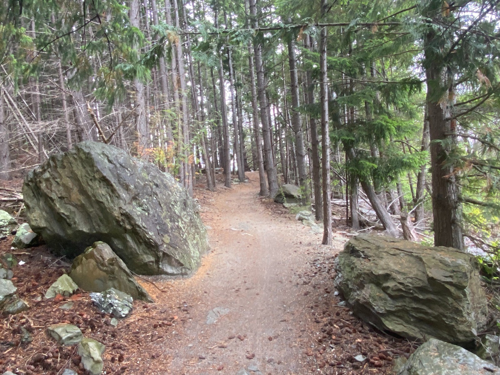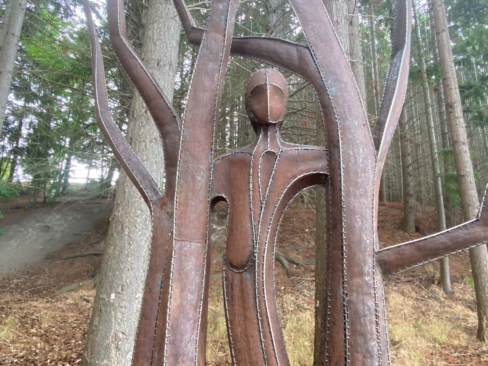 Des sculptures ici et là agrémentent le parcours sans parler des “coves” ( criques ) et leurs jolis galets.