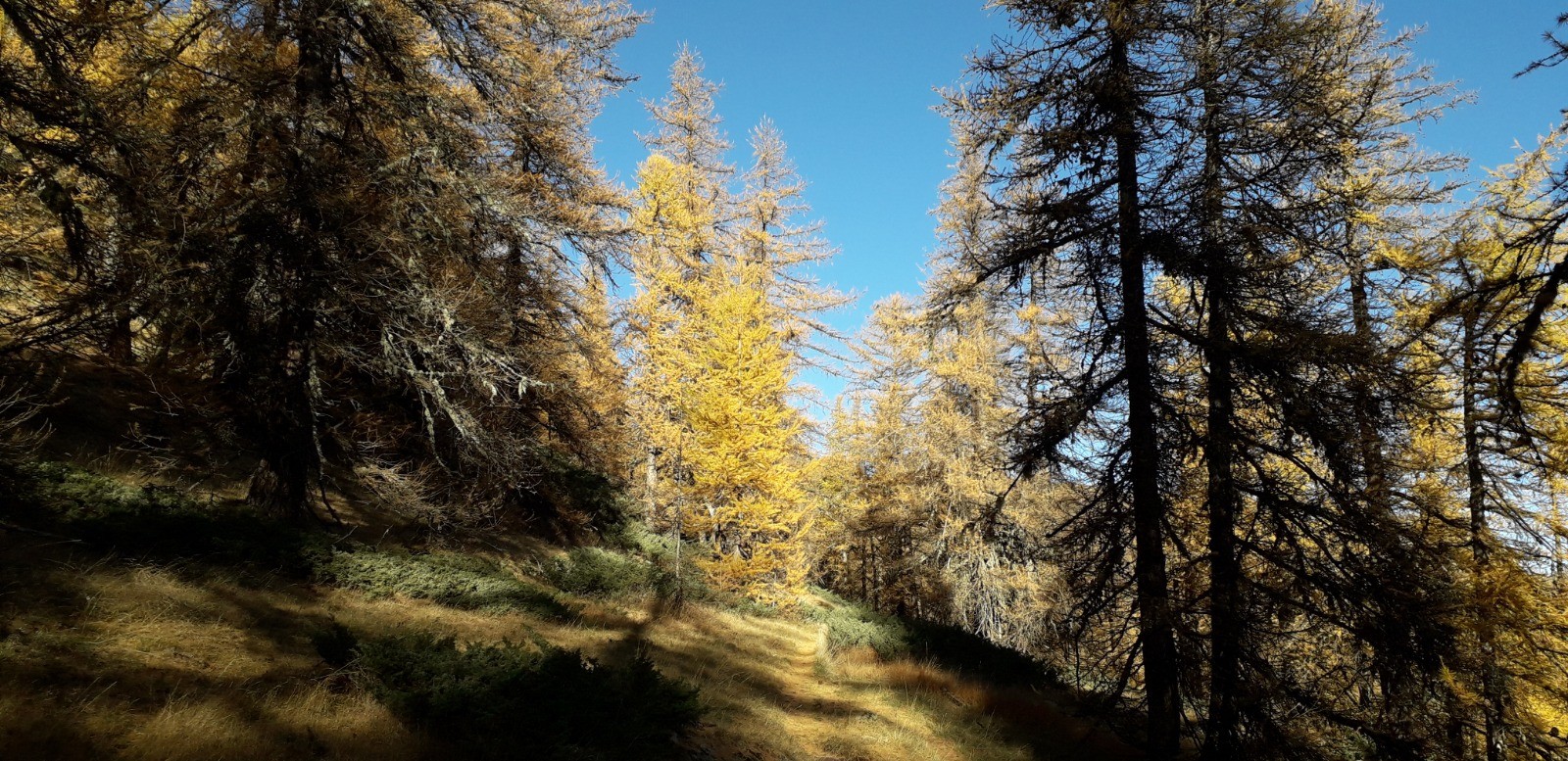 Conclusion : Beauté et harmonie sont les maîtres mots qui pourraient qualifier cette sortie en moyenne montagne dans un cadre préservé et protégé. Tout y est empreint de sérénité jusqu'au cheminement qui s'effectue à pas feutrés sur des sentes tapissées d'aiguilles de mélèzes qui accentuent les tonalités rougeoyantes de cette saison automnale. Magnifique parcours vivement recommandé !