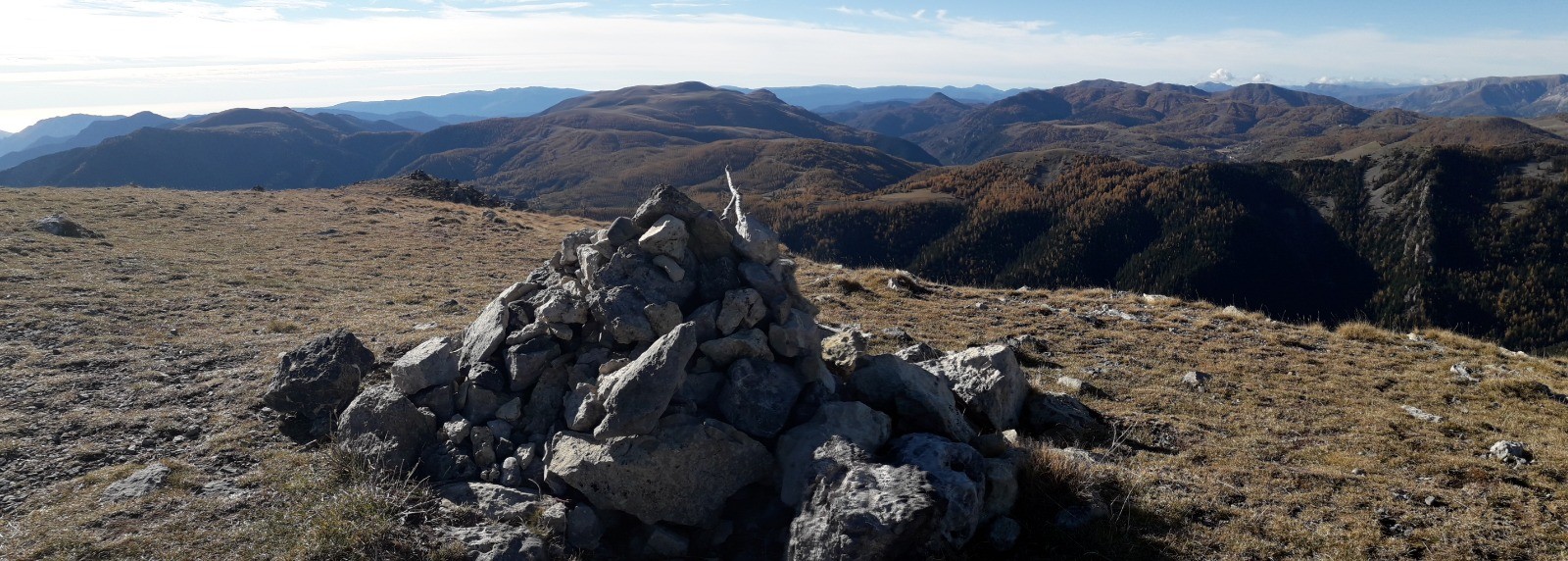 Très beau cheminement boisé par la crête de la Clauetta jusqu'au petit plateau précédant la douce proéminence du Mont Autcellier. Point de vue spectaculaire depuis le dôme sommital, notamment sur le Grand Mounier qui domine les lieux depuis ses 2817 m.