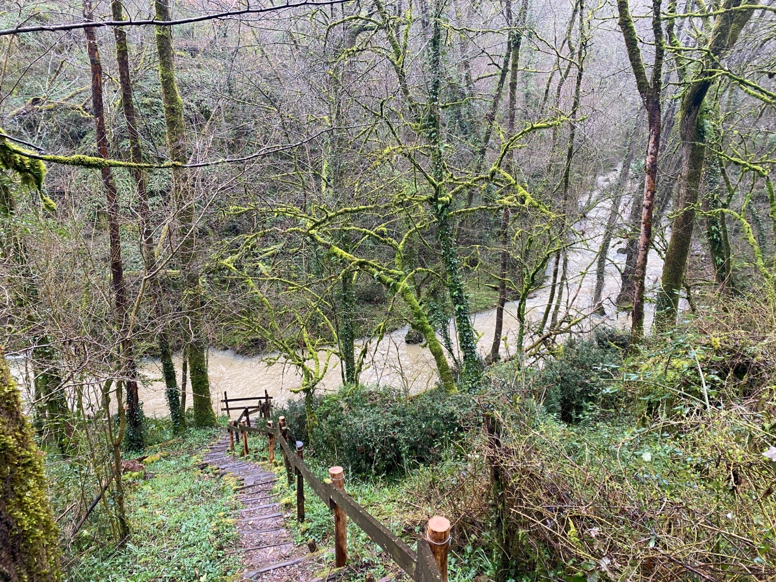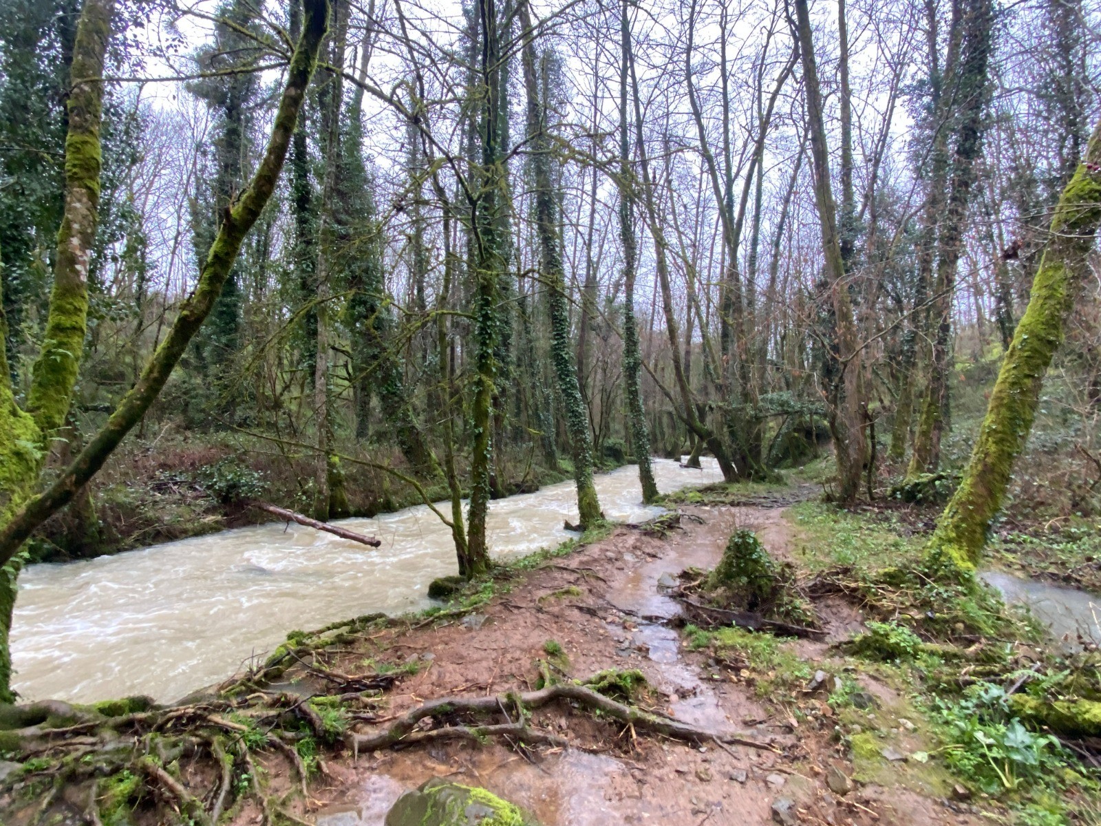 Ici tout est recouvert de mousses et les racines ont investi chaque centimètre du sentier.