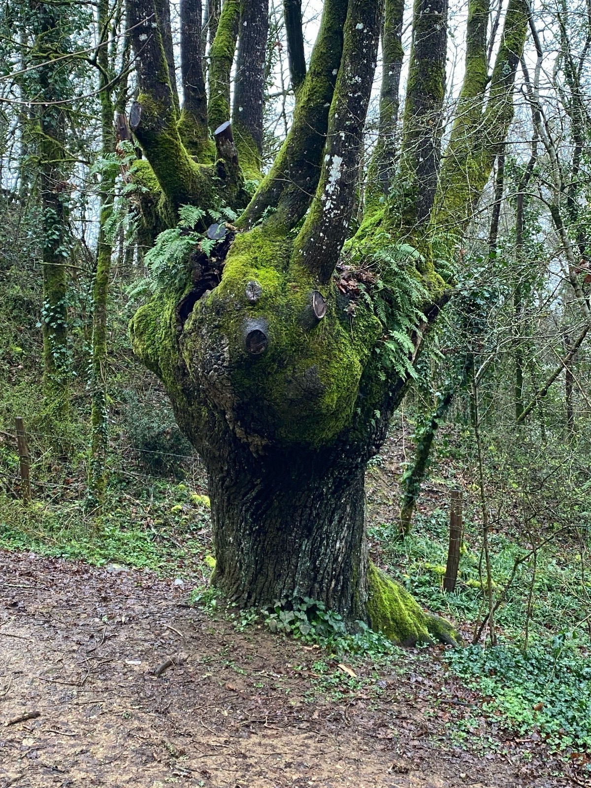 On y trouve diverses essences d’arbres (chêne, frêne, érable, charme…) dont un chêne trogne remarquable par sa taille et sa silhouette.