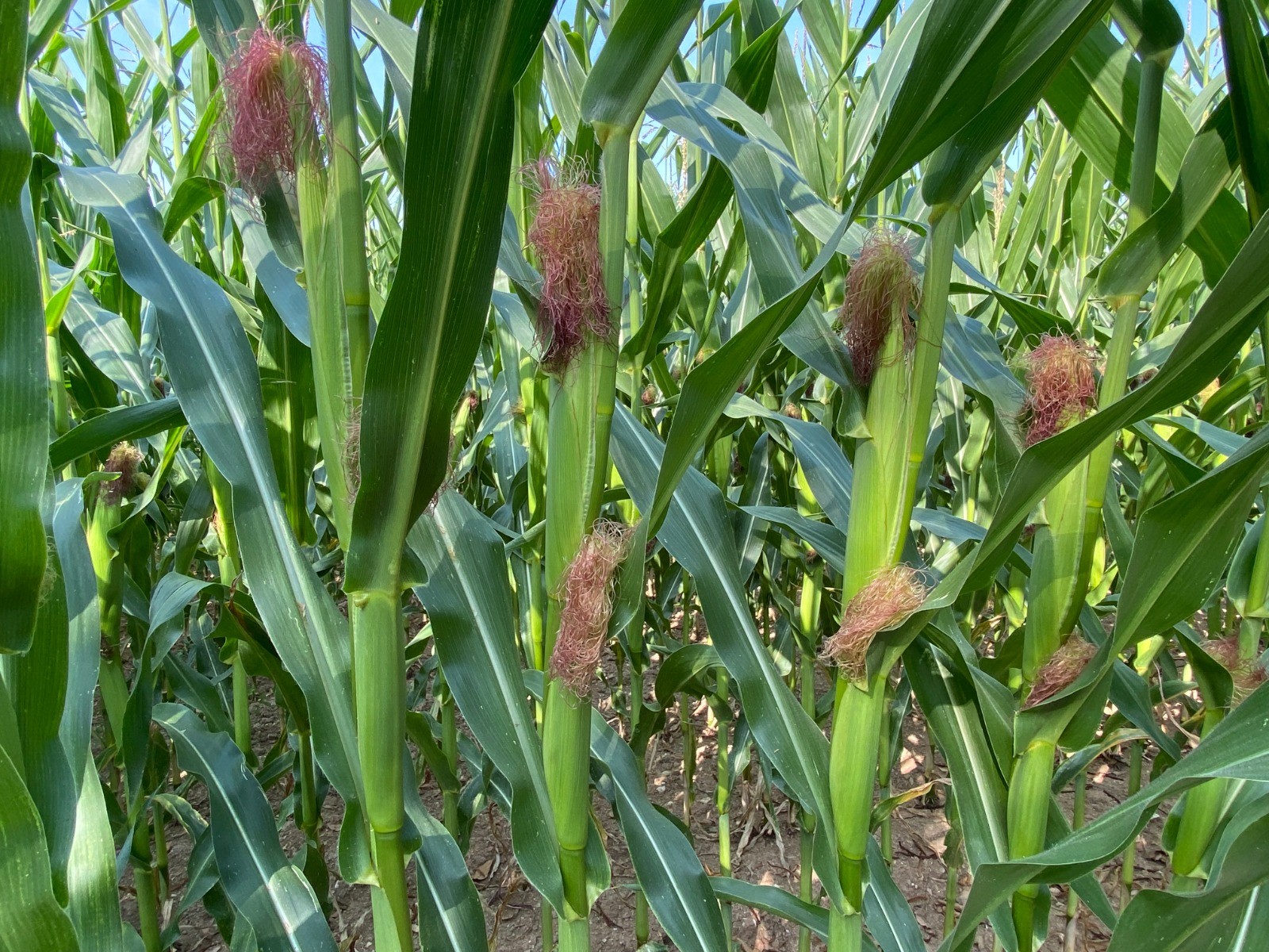 Ici le maïs ne semble pas trop souffrir de la chaleur, il a de belles "poupées" ( photo no 8 ).