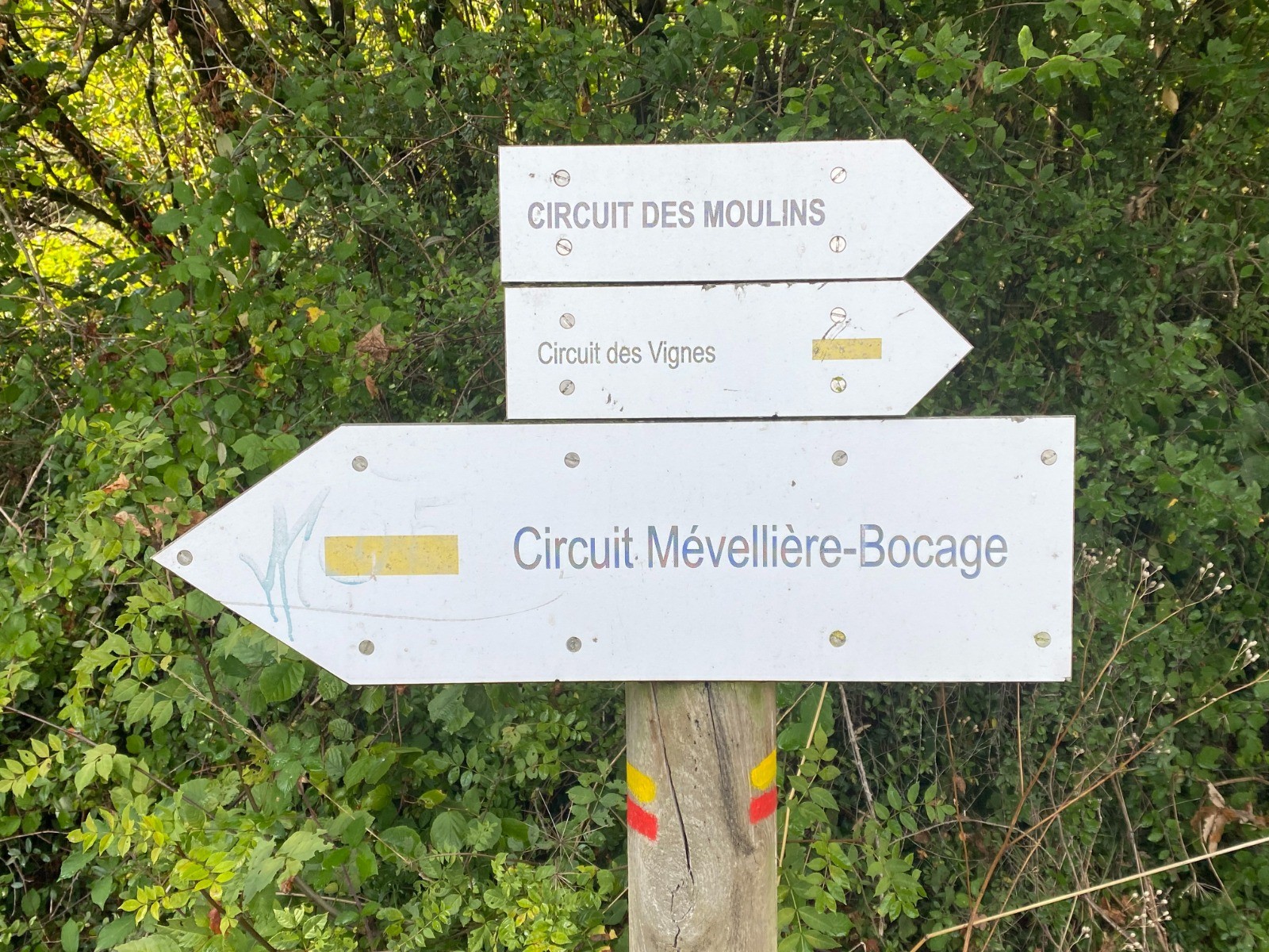 A la lecture des différents panneaux, ce circuit emprunte le circuit des landes, le circuit des moulins, le circuit des vignes et le circuit Mévellière-Bocage.