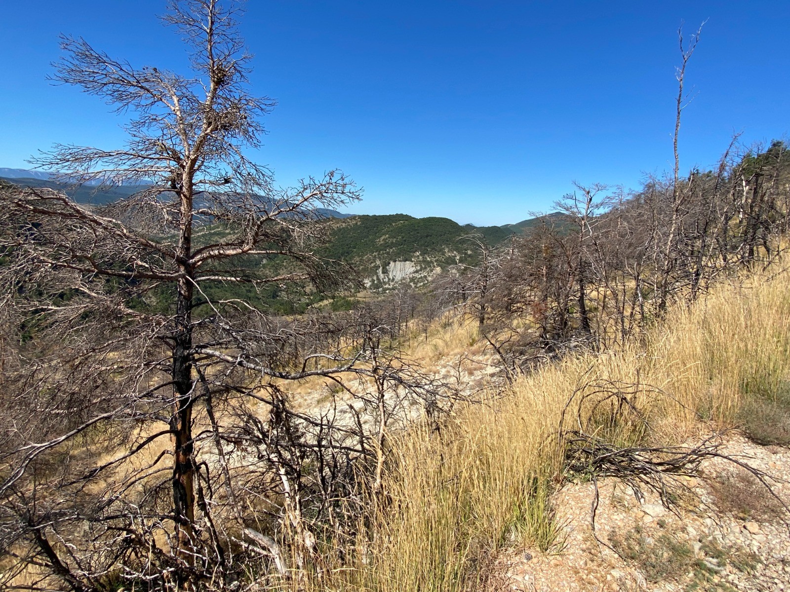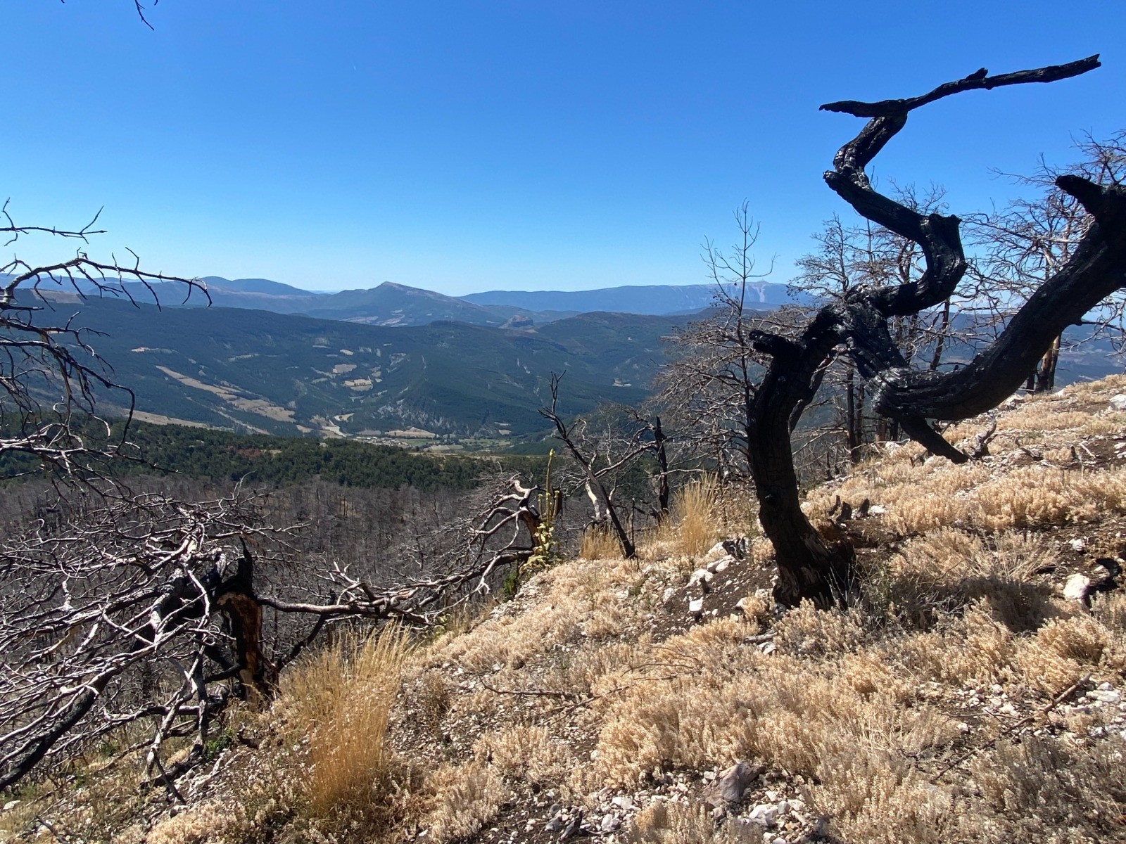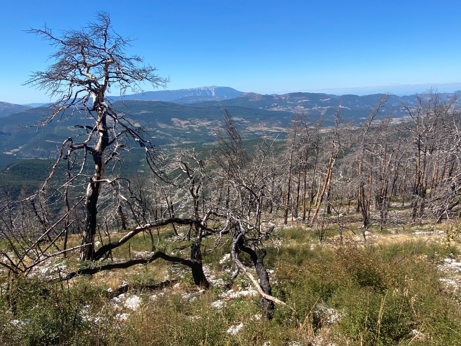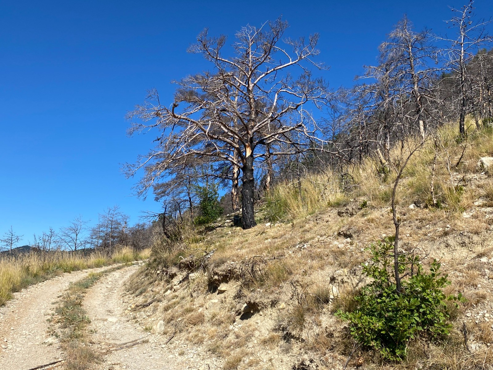 Sur cette portion ( Plaine des pins et Grande Plaine ) nous sommes au cœur des arbres calcinés par ce fameux incendie.
