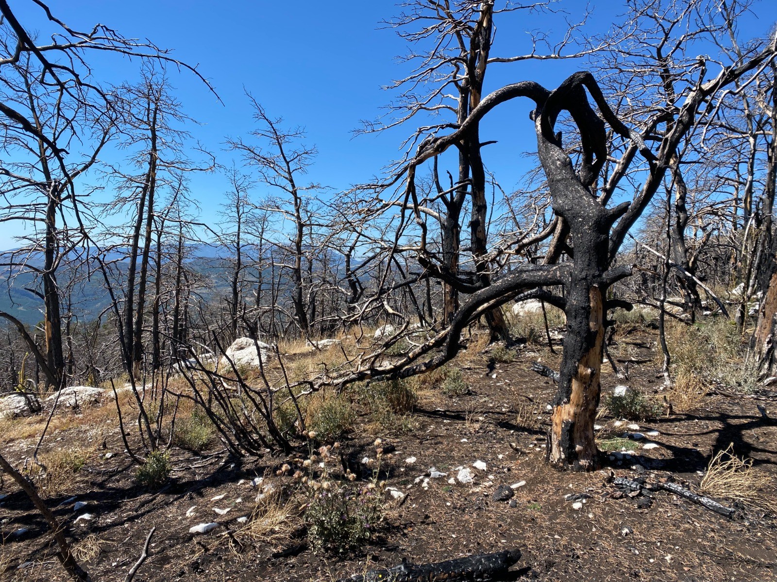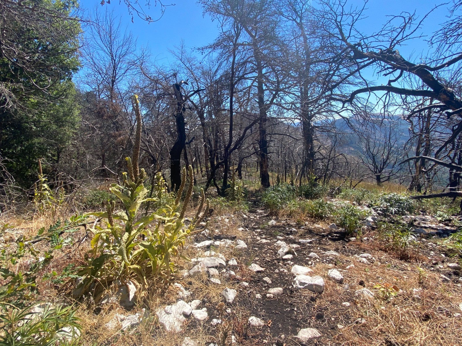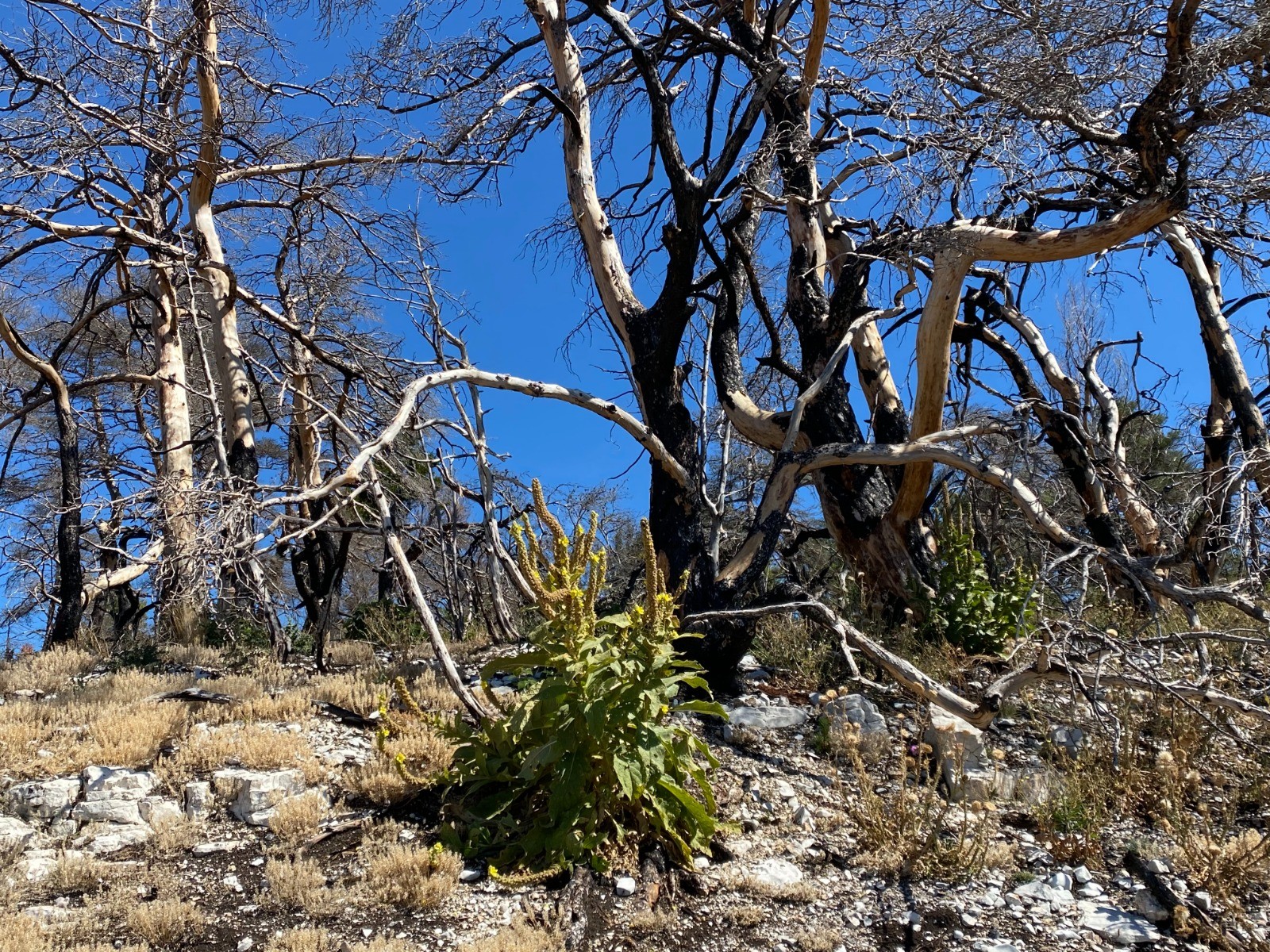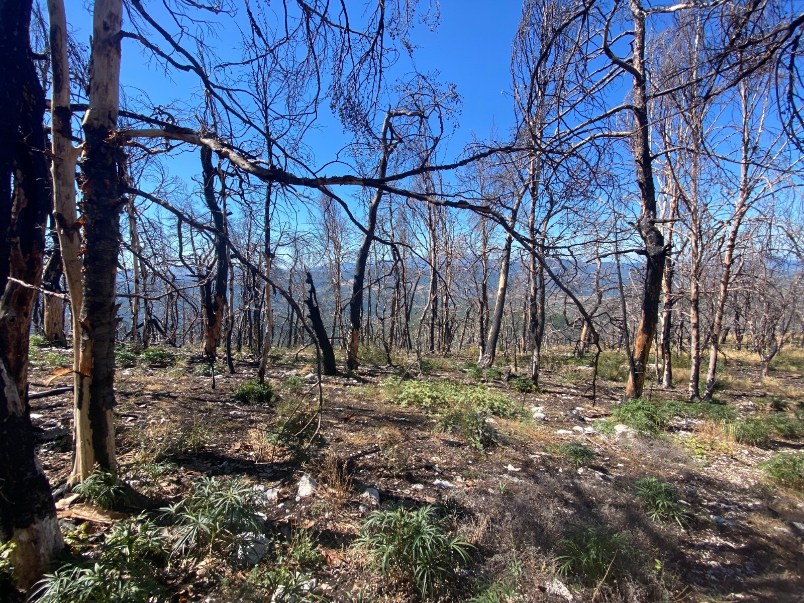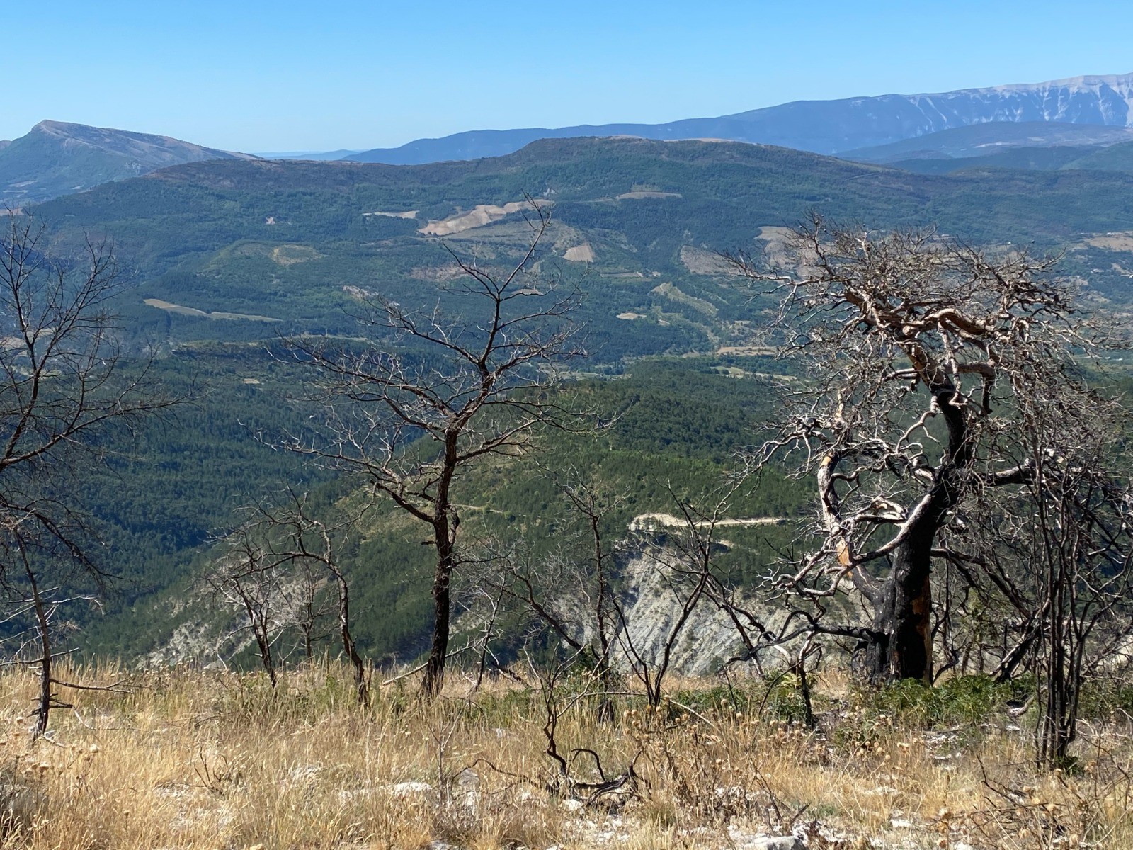 Sur cette portion ( Plaine des pins et Grande Plaine ) nous sommes au cœur des arbres calcinés par ce fameux incendie.