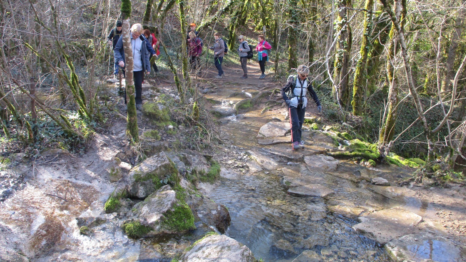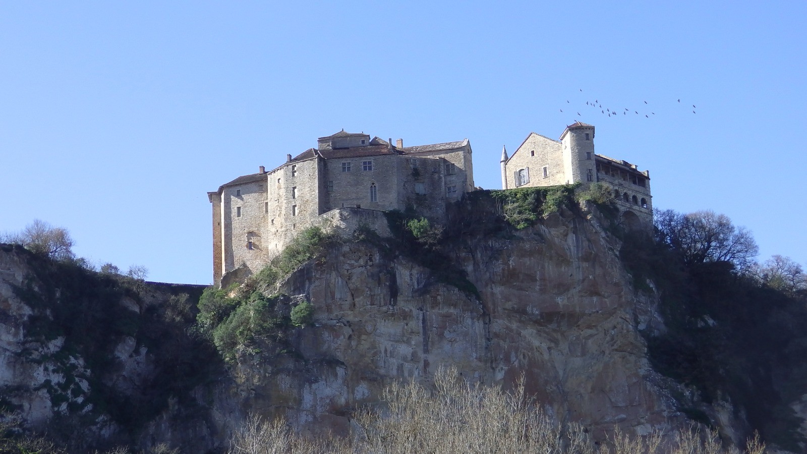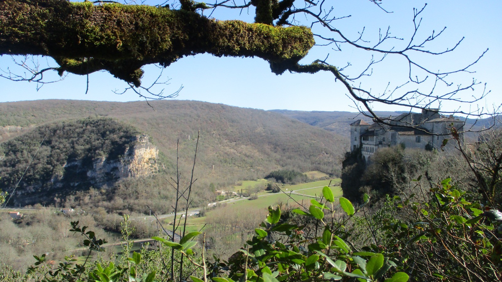 - Au bas du chemin, quelques maisons et beaucoup de panneaux : prendre à gauche le chemin qui remonte le "Cabéou", magnifique petit ruisseau mais dont les buis ont été ravagés par la pyrale. Arrivé sur le plateau On redescend dans la vallée et on arrive à un pont sur l'Aveyron. de l'autre côté du pont au bord de la Veyre, se trouve une zone de pique-nique avec de tables, dominée par l'iposant château de Bruniquel;