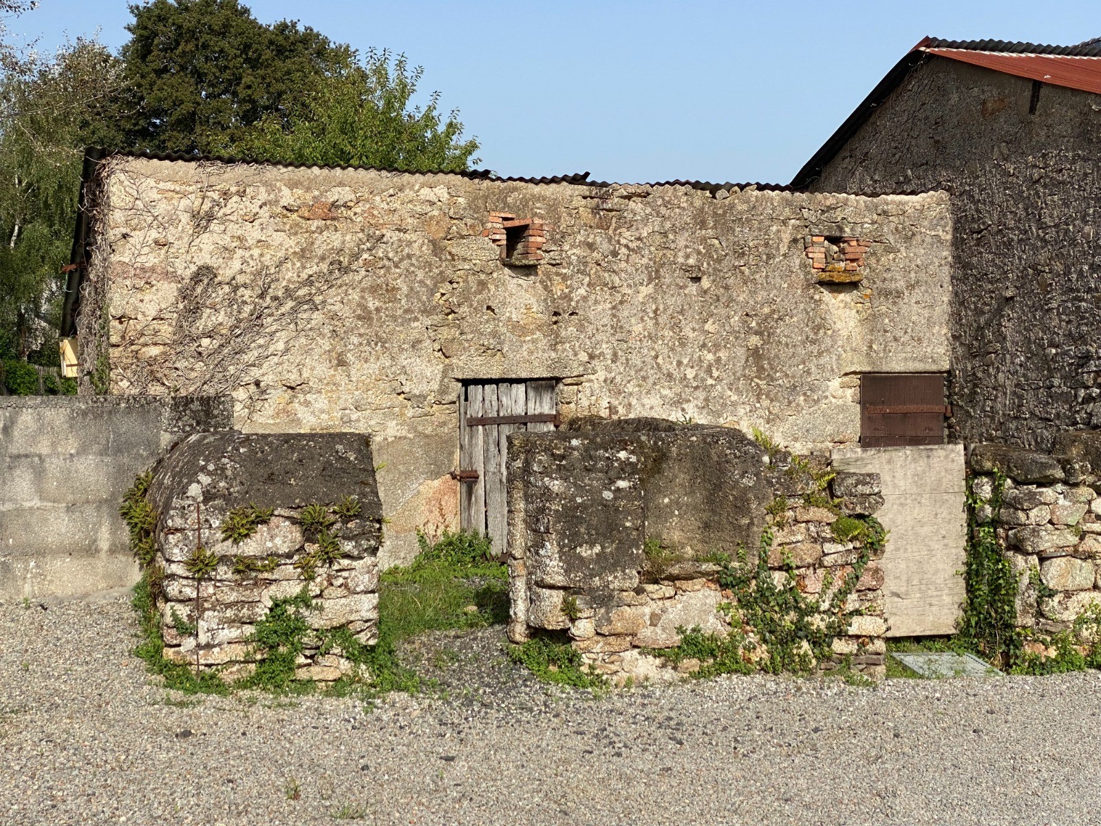 On retrouve ce granit à gros grains dans les murs des maisons anciennes, des soues à cochons et de tout le petit patrimoine local.