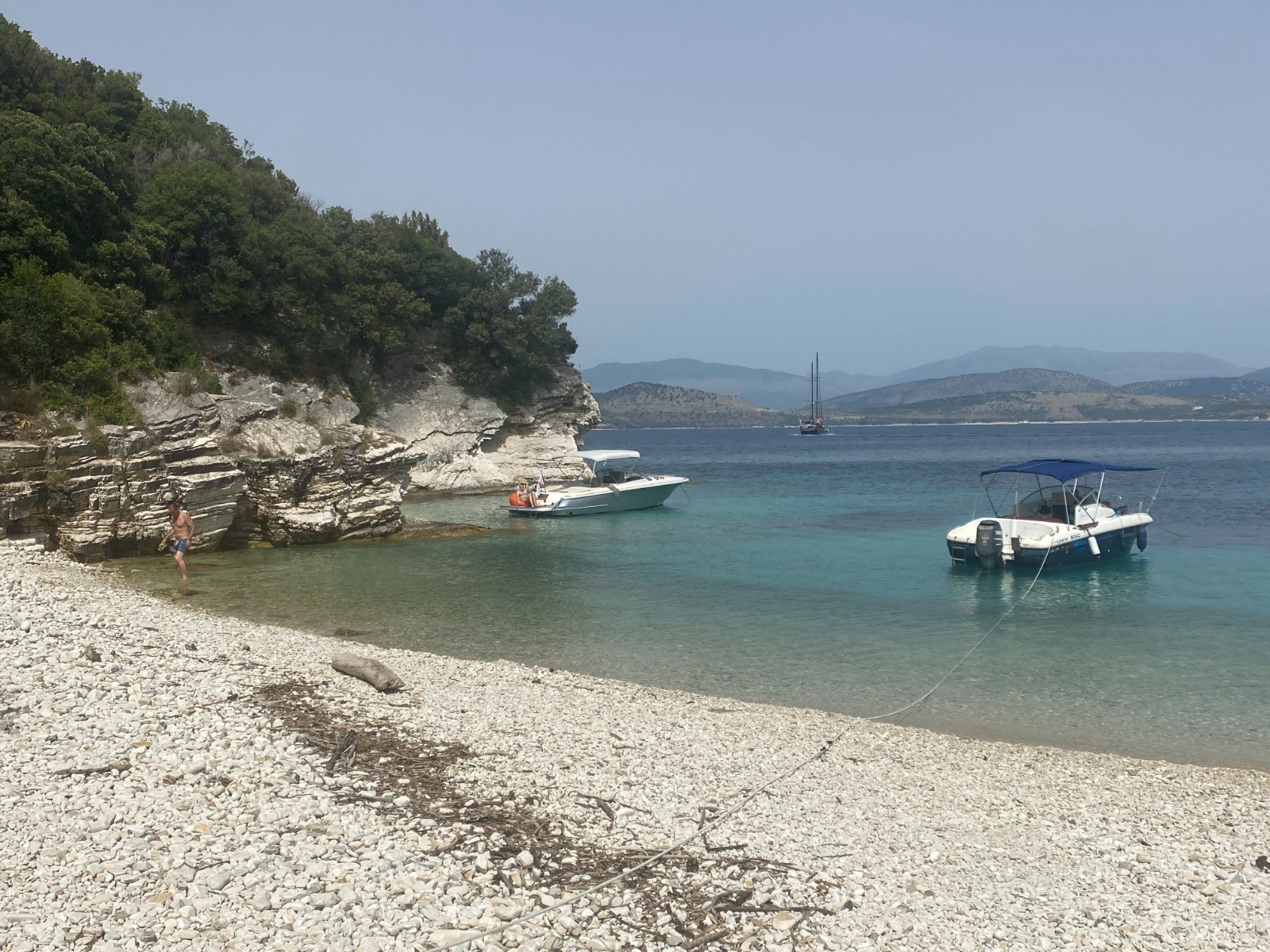 Une plage de petits galets blancs, une eau turquoise, le soleil... quoi rêver de mieux.