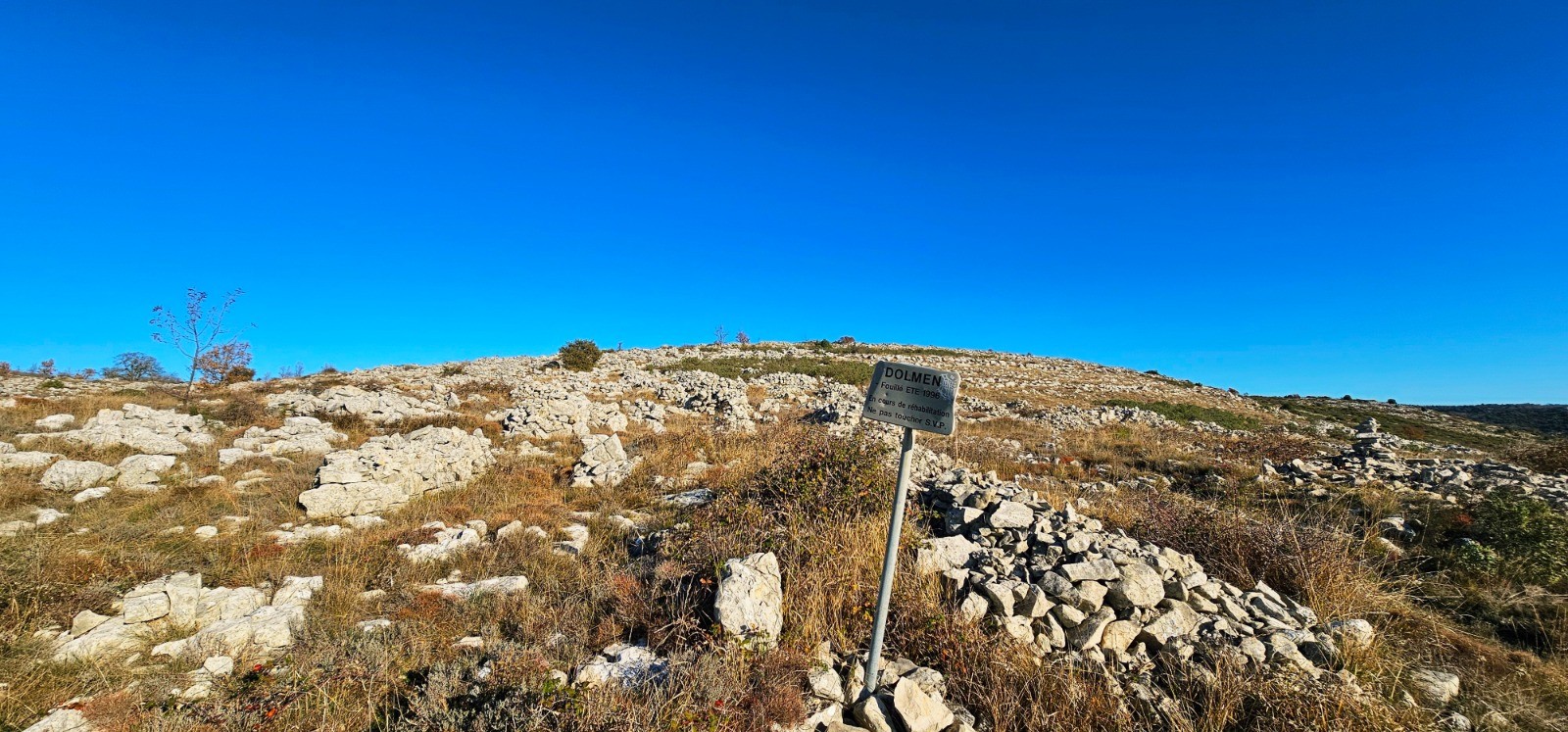 - nombreux tertres ou tumulus à l'approche du km 6,60 avec dolmen signalé sur carte IGN et à droite sentier par panneau indicateur (photo N° 11)