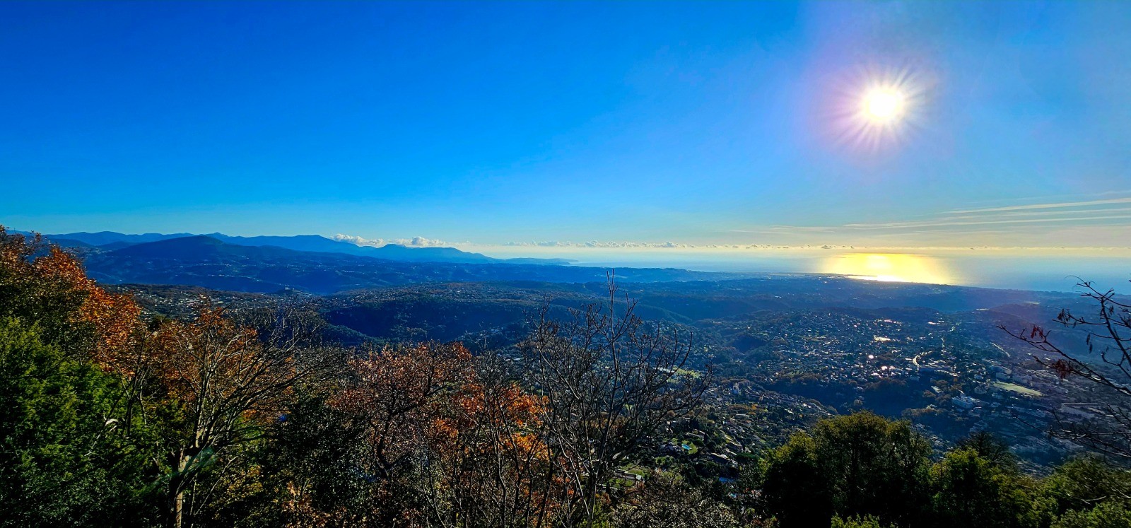 Phase retour privilégiant cheminement par sentier pour éviter axe routier avec dernière extension optionnelle menant au Balcon du Malvan avec panorama sur massifs environnants et vue plongeante sur vallon de la Cagne + chaîne enneigée du Mercantour en ligne d'horizon. Depuis la B 143 suivre sentier depuis petit parking attenant, en longeant la M2 jusqu'au centre hippique situé sur accotement opposé. Emprunter alors une piste rectiligne orientée nord-est jusqu'à la balise 144 (ne figurant pas sur carte IGN) qui délimite la portion de sentier à suivre en extension aller / retour jusqu'au point haut de cette rando à 1000 m. Quelle que soit l'option choisie, repartir depuis cette balise 144 par sente (PR) orientée sud-est, afin de rejoindre le col de Vence à la B 138. Il est à noter que cette dernière section de chemin forestier recoupe de nombreuses sentes et que l'emploi d'un GPS est vivement recommandé. Depuis le col de Vence, suivre momentanément la M2 jusqu'au 1er virage avant d'en couper les lacets pour récupérer la B 137 (positionnée après le parapet droit de la route) avec cheminement par le GR 51 de la B 136 qui ramène directement au parking de départ.